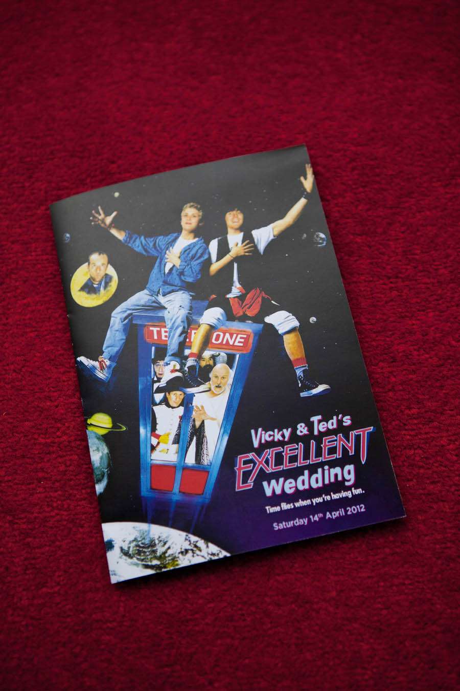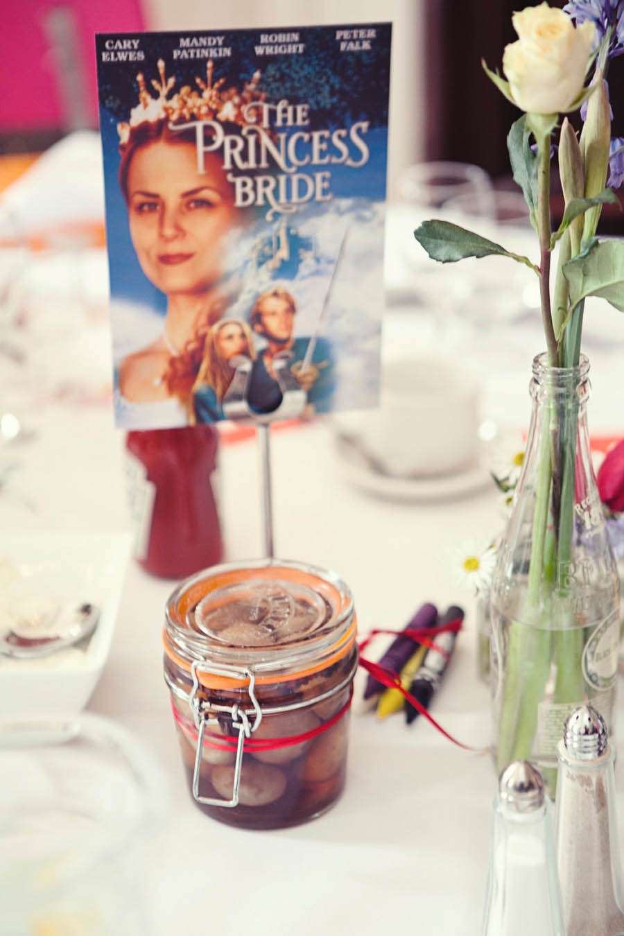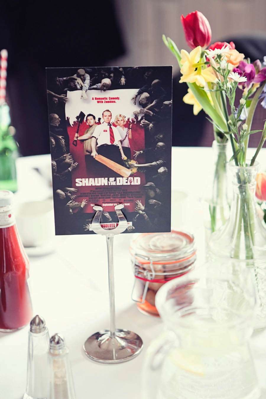To continue the movie theme, the couple had a friend photoshop their faces onto various movie posters for all the wedding stationery. “I have work friend who often creates crazy birthday cards for people at work, photoshopping their faces onto other people and things. I found the Bride and the Beast poster online and my friend made it into our invitation. When it came to the order of service and table names he had to do a mammoth photo session with us to get all the right angles etc, and bless him he worked very hard to get those all done in time.”