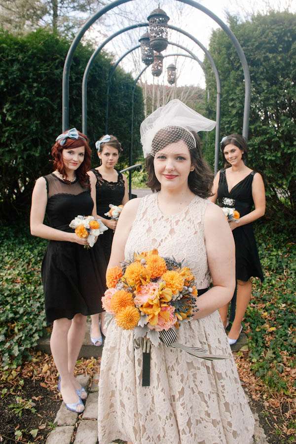 So they had their perfect venue, but the personalisation of the decor was also really important to this couple. “In my more relaxed moments of planning I had faith that following my instincts would lead to a look that was ‘us’, without needing a set ‘theme’ or a ton of paper goods in the same shade or blue. Though I’m sure it isn’t obvious, I took inspiration from the Alice in Wonderland Little Golden Book: tea length dresses, bows, nature as it is, colorful and random. I wanted whimsy and sophistication, but I need simplicity.”