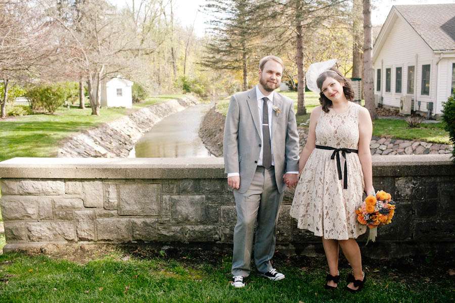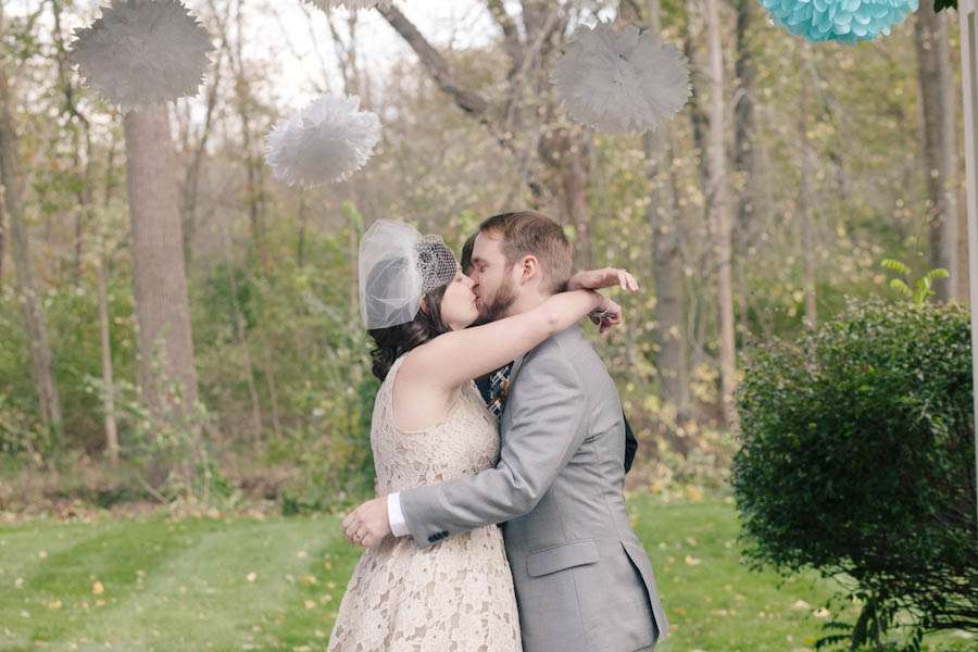 “I can literally remember the first time I saw my husband Ben,” Nicole told me. “It was in the 8th grade and we hadn’t even met yet. We were both at a local high school for a math/science magnet school entrance exam, and we were both wearing oversized Bush t-shirts. So much romantic potential, I know. I took the test and crossed my fingers that we would both be accepted and that I would get the chance to meet him. Lo and behold, come that Fall, there he was in my 9th grade geometry class. Still, shy and anxious as we both were, it wasn’t until ten years later that we would fess-up to our decade-long crushes and start dating. I went to college in NYC and Ben traveled between Michigan and Ohio for an engineering program, but we never lost touch. We instant messaged and sent real paper mail. Once he even collected all the J.D. Salinger short stories he could find (I was big Holden Caulfield fan), compiled them in a binder, and mailed it to me. I know most brides would describe their wedding day as a ‘dream come true’, but I’m not sure they all mean it so literally. I have a stack of high school journals chronicling my crush to prove it.”