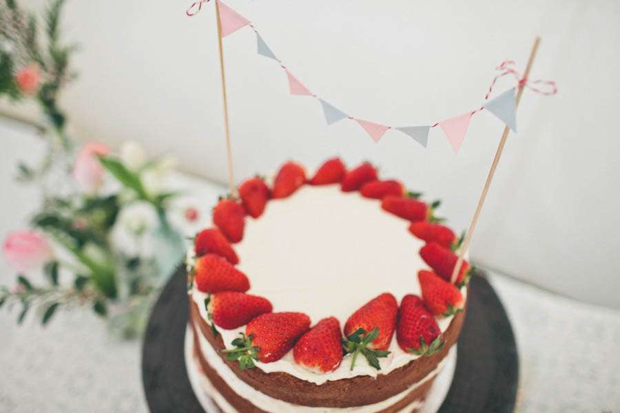 “ Working in theatre, I saw a great opportunity to go wild in the Chichester Festival Theatre props store and hire plenty of old bits of furniture and the odd trunk and suitcase to give a truly whimsical and old fashioned feel to the day. We used two suitcases and one hat box on the cake table to tier the cake levels and display them a little better. We used another suitcase for the presents and cards table. We also had a small ‘lounge’ area near the photobooth, where people could relax and feel like they were a little further away from the dance floor action if they wanted. For this we chose a couple of large, wing-backed armchairs, a nice big trunk as a coffee table, and a few little side tables with mismatched wooden chairs dotted around them. It gave a really lovely cafe style atmosphere and was very popular with all the guests, particularly the littlest ones who liked the big chairs! ”