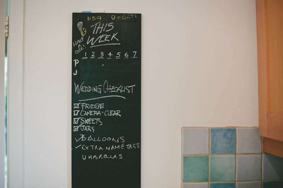 “I wanted to add some colour to the tables, so I used the same 5 patterns of fabric which we used on the chutney jars, and made 70 placemats to go in each guest’s place. They were a little labour intensive as the pinning and sewing of the hems was fiddly, but I was so pleased with how they looked when we laid them out. The ‘Mr and Mrs Dall’ banner originated from my Hen Weekend. My wonderful bridesmaid, Penny, had made a lovely ‘Mrs Dall’ banner from card, paint and ribbon. I took it home with me after the weekend and realised how fantastic it would look with ‘Mr &’ added to it, and then hung behind us at the top table.”