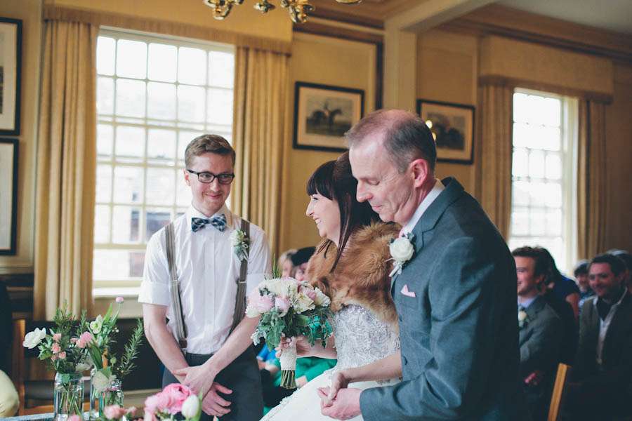 ‘So what about that amazing dress?’ I hear you cry! “My dress was designed by Emily Garrod“, the bride told me. I realised quite quickly that I would not find my wedding dress in a bridal shop. I adore vintage style dresses and have a few 1950s style prom dresses with big petticoats. I knew I needed something in this style, rather than the classic long wedding dress. I found Emily by chance through a friend who worked in a shop and enquired about Emily’s dress which she was wearing when she wandered into the store. It turned out she had made herself. She is a wedding dress maker who is relatively fresh to the industry but absolutely fantastic and keen to fulfill your brief but also aid you with understanding what designs work with your height, shape etc. I gave her a brief of ‘1950s MGM musical meets ballet dancer’ and I was over the moon that she managed to make a dress which looked entirely as I had imagined it would. ”