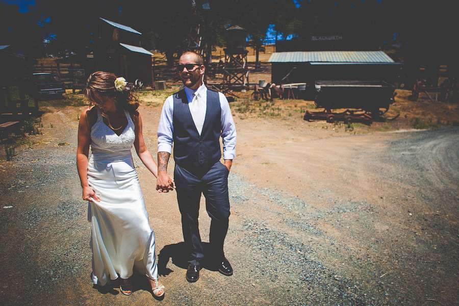 The ranch location of Natalie & Dave’s wedding helped to set their theme. With crafty DIY details creating a rustic charm, this wedding was one with a real relaxed vibe. The Californian sunshine probably helped as well! “I am not sure what to call our theme really,” began the bride, “because it was outdoors we used berlap, wildflowers and wine barrels which gave it that country feel. But I also liked adding lace, pearls and hanging lights to give it a more elegant look.”