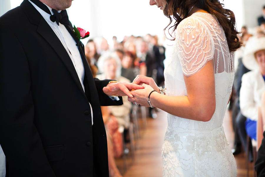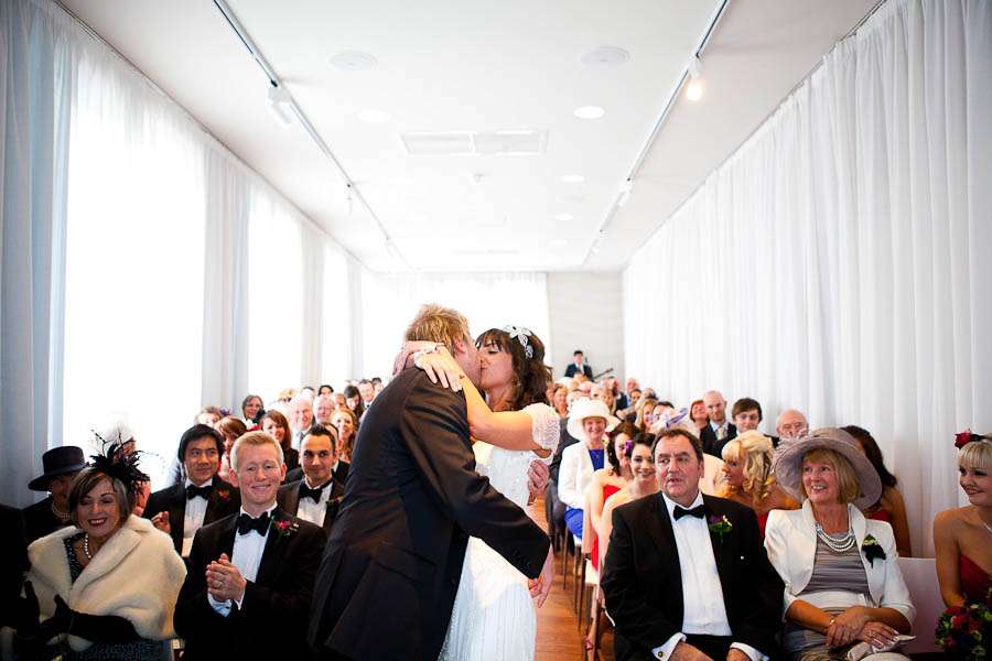 “Matthew is an architect & loves modernist architecture and things that are minimalist, well designed & have clean lines so we decided we’d like our wedding to reflect this”, newlywed Hayley wrote. “The venue really set the scene with it’s amazing art deco features but funky modern interior so we chose not to detract from this keeping decorations & flowers to an absolute minimum & only in white. We wanted the guests & bridesmaids to add the pop of colour which they did!”