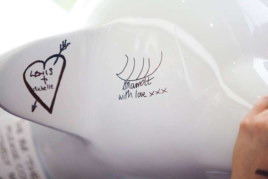 “The most Rock n Roll aspect of the wedding was probably the after party in our epic honeymoon suite with all our friends in the jacuzzi on the balcony!” she concluded. “The only problem was we had to leave for the airport at 4am… So when my parents knocked on the door to say the limo was waiting we were still partying & hadn’t packed at all… That flight to New York was the worst journey of my life, we felt awful!”