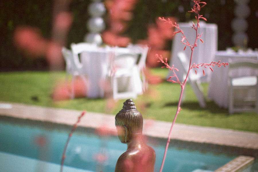 The day had a laid back vibe, one which was perfect for the Palm Springs location. Kelly continued, “Our inspiration was to take what was natural about Palm Springs and the desert but to not overplay it. We wanted it to be very ‘us’ i.e. LOW MAINTENANCE. All the touches were pretty subtle and we utilized materials that were natural for that environment. Lots of succulents & stones, and tons of my favorite elements that I work with in my art work: metal and wood. Ken and I are pretty casual people, and love the outdoors but we’re both also very much into the style and music of the 60s and 70s, so we really wanted to combine our love of nature and our love of retro California style.”