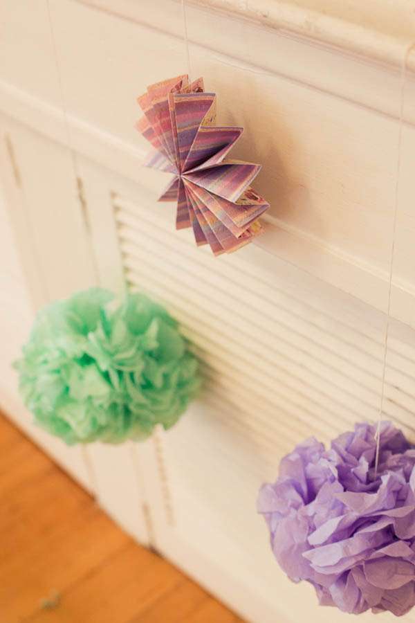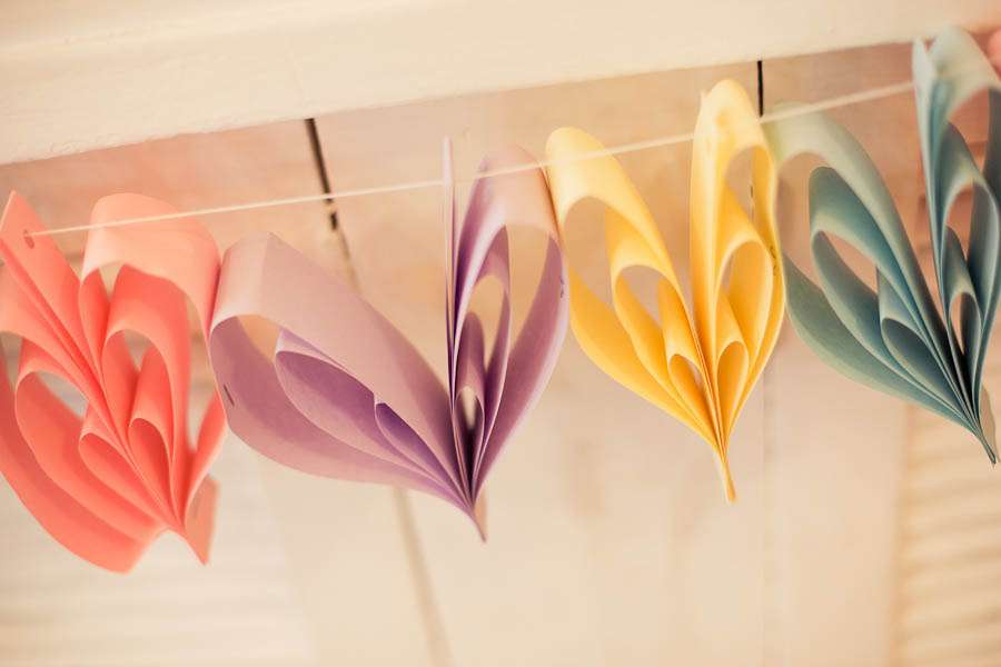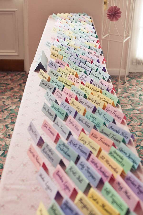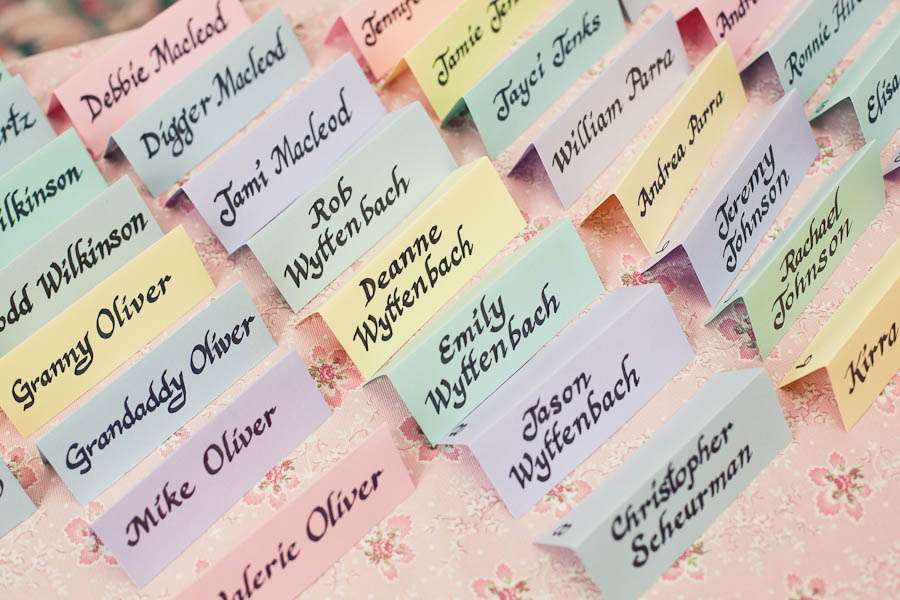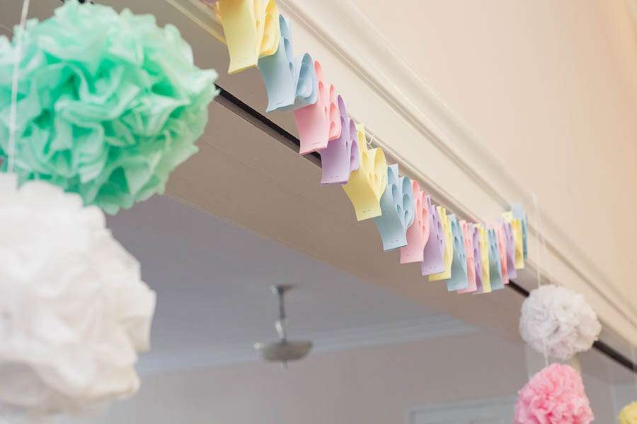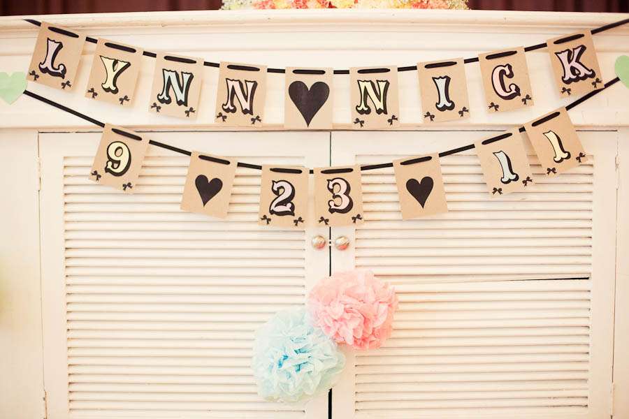 “Our favorite part of the wedding were these handmade decorations”, the bride concluded. “The paper heart garland, the wedding sign and tissue puffs were re-used from my bridal shower. They were all so beautiful I wanted to get as much use as I could out of them.”