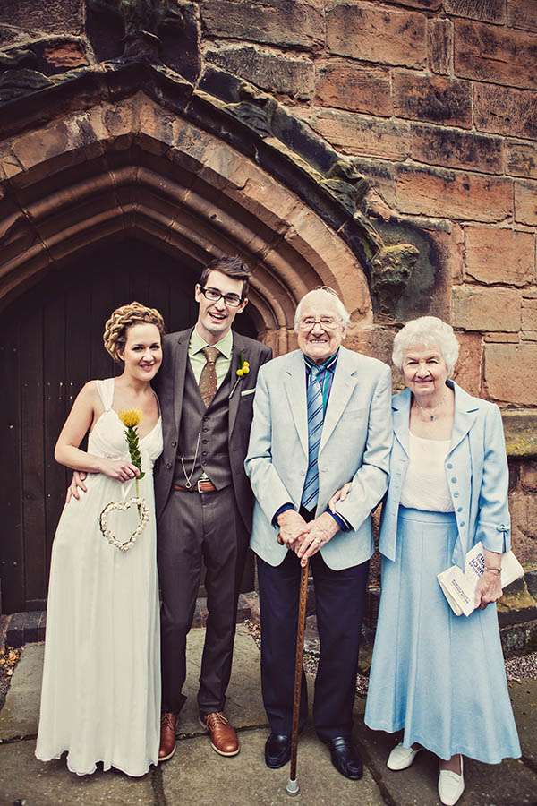 So you can imagine my exuberance when Gavin & Hollie’s wedding landed on my lap. “My good friends Gav and Hol got married in April”, wrote wedding photographer Anna Clarke. “They are a beautiful and too-cool-for-school couple who had a yellow and green wedding. They did everything themselves including all the printed stuff, going to the flower market to get the flowers, decorating the village hall etc etc. I just love all the colours and Hollie’s dreads piled into a big beehive. Her shoes are amaze-balls too…”