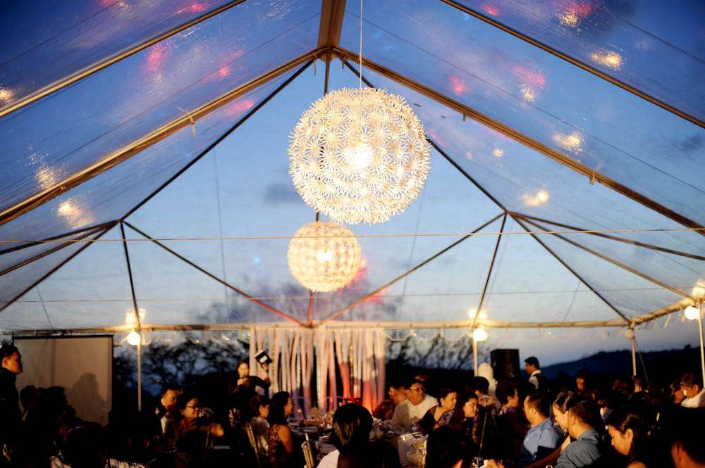 “I wanted this Ikea Maskros lamp to be the centerpiece of my reception. We ended up buying 2 of them and hung them from the roof of the venue. Our reception concept actually stemmed from that simple lamp. I thought that if we had been in hotel, then it would have had chandeliers on the ceilings so we did the same thing with our lamps. We chose a transparent tent for our reception as we felt it would best showcase the lamp’s beauty, especially at night, as well as making us feel closer to nature.”