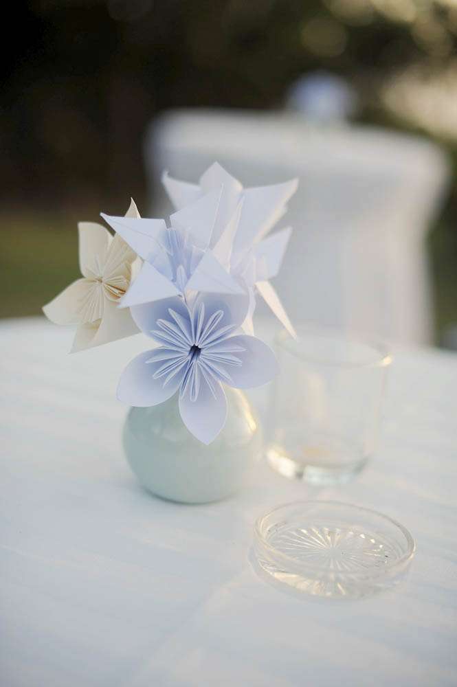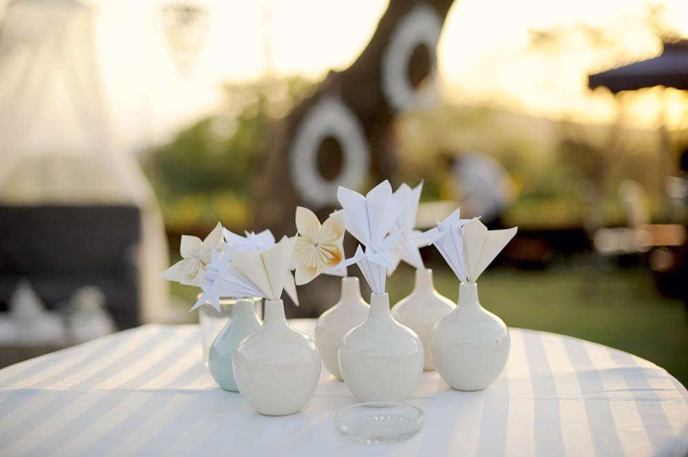 “Then came the idea of paper decorations on the table. We had paper flowers instead of real flowers, a paper backdrop for the stage and paper boxes with beautiful words on them.”