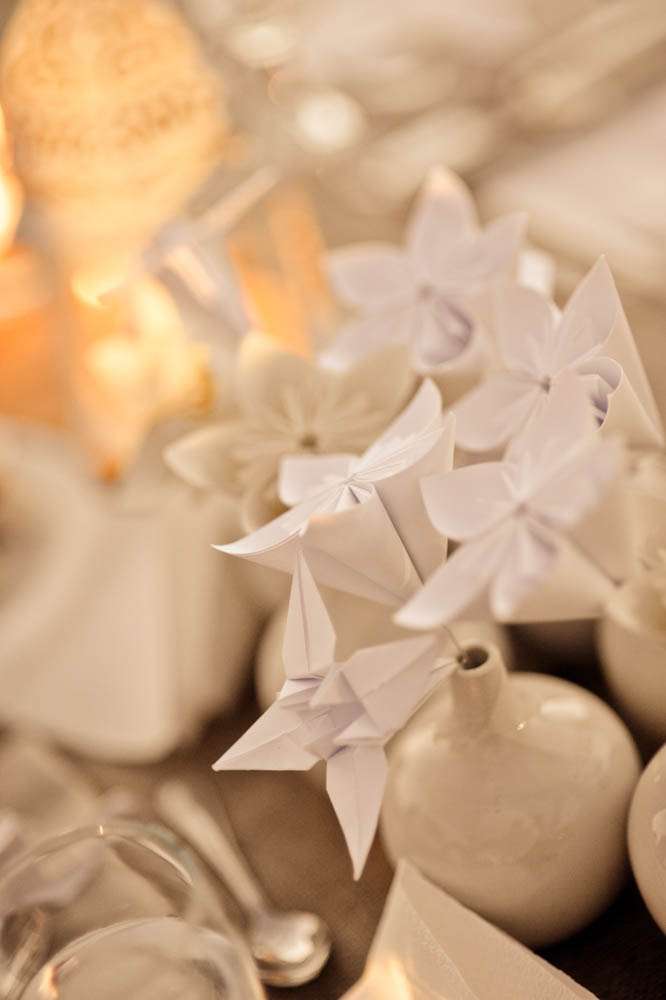 “When I found this amazing photo on a wedding blog (I can’t remember which one) I knew I had finally found our theme”, she continued. “Paper and ‘white on white’ was what we wanted. In fact we called our theme ‘paper surreal’ because I love paper. We had a quirky wedding. It was my dream to have a wedding as close to nature as possible so we had a lot of the day outside. Having natural light photographs was really important to us.”