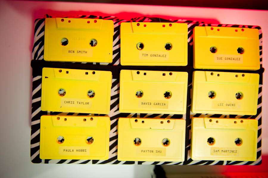 “I have always wanted to do an 80s inspired styled photo shoot using same-sex couples. Every detail from the ‘pink flamingos’ inspired centerpieces, the rubix cube and view finder take away gift, the cassette tape cookies and desserts, and a rockstar bridal bouquet were designed to captivate a demographic that is very rarely used to define a genre. The 80s were an indulgent time and given today’s climate, especially surrounding gay marriage rights, it seems like the perfect parallel. My concept would embrace that indulgence and by using same-sex couples I wanted to celebrate good times and a life full of love. The 80s represents a time when things were changing, and I want to bring that back!”
