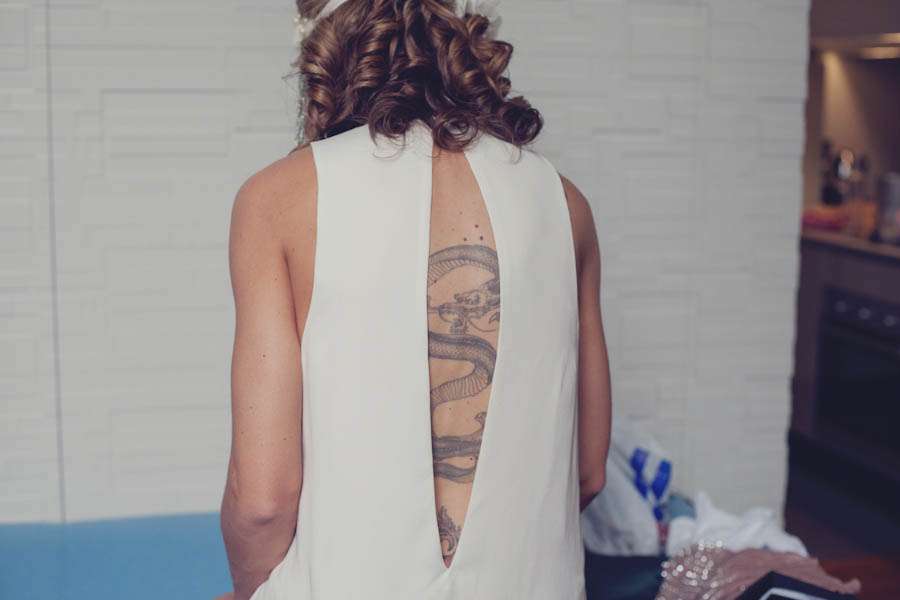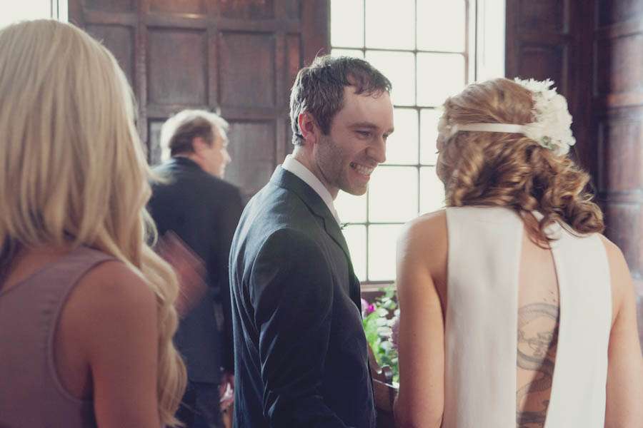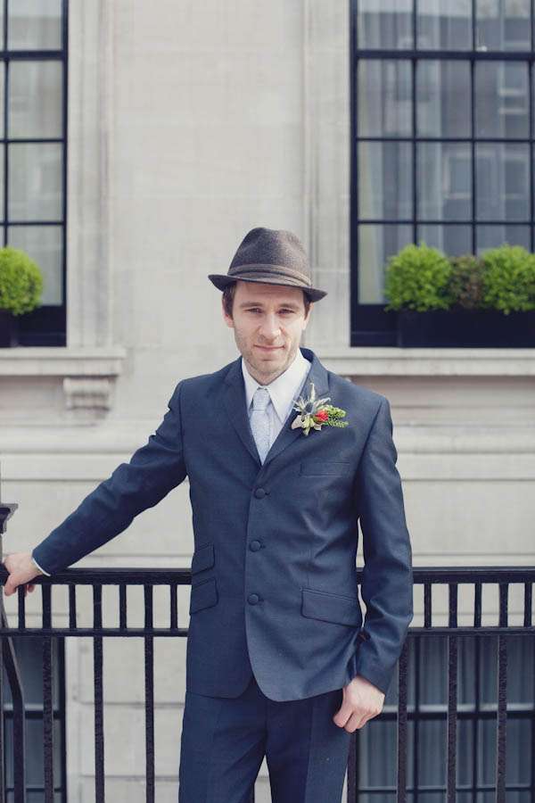 Although Jo’s outfit was vintage inspired she went for contemporary designers who gave her look a chic edge. Her dress was created by ACNE and her statement headpiece by etsy designer Kat Swank. “Both my dad and my son walked me up the aisle which was lovely”, Jo responded when I asked her about her favourite part of the wedding. “My daughter and niece were also flower girls.”