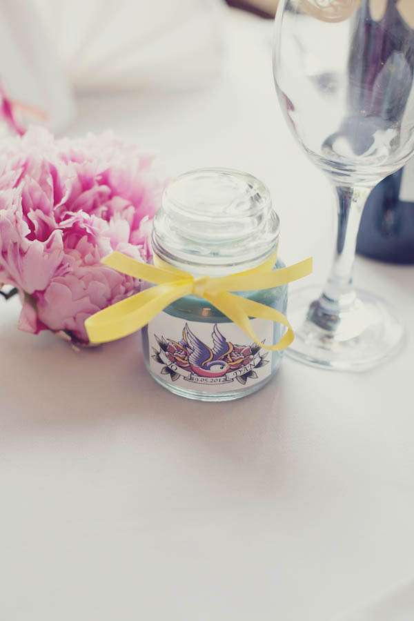 “In fact the flowers were another passion of mine, I didn’t want them to be formal in any way and so instead I wanted to create the feeling of walking into a meadow of wild flowers. We achieved this by arranging different varieties in a wide spectrum of colours in a various vintage vases along the dining tables (all the vases were sourced and brought from second hand shops).”