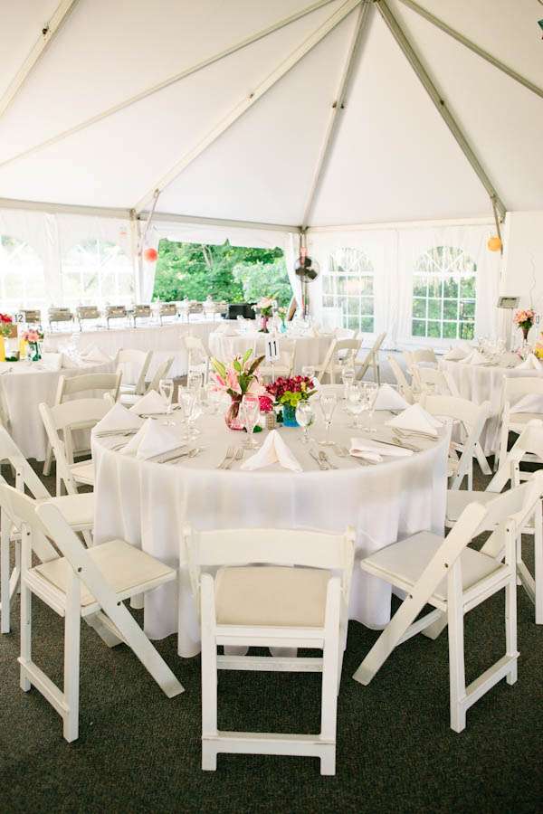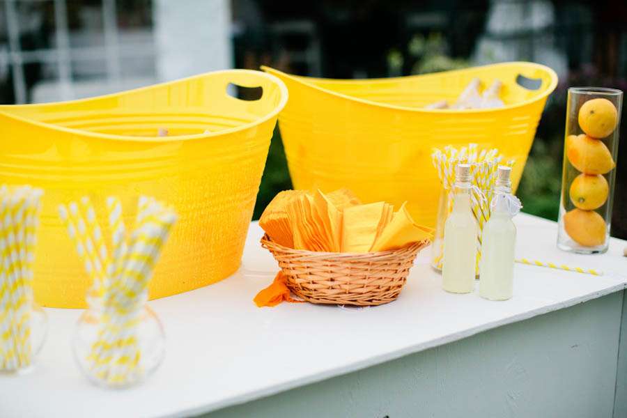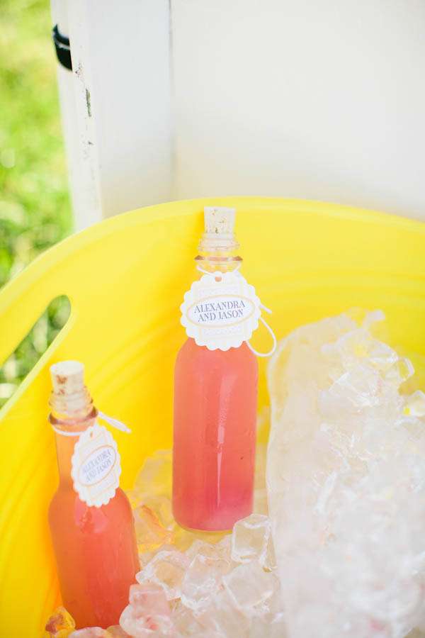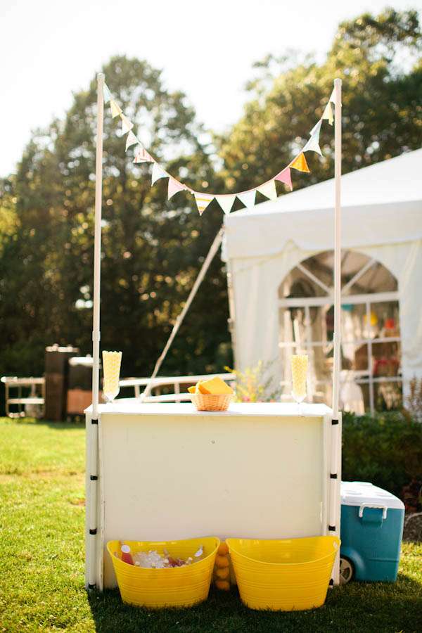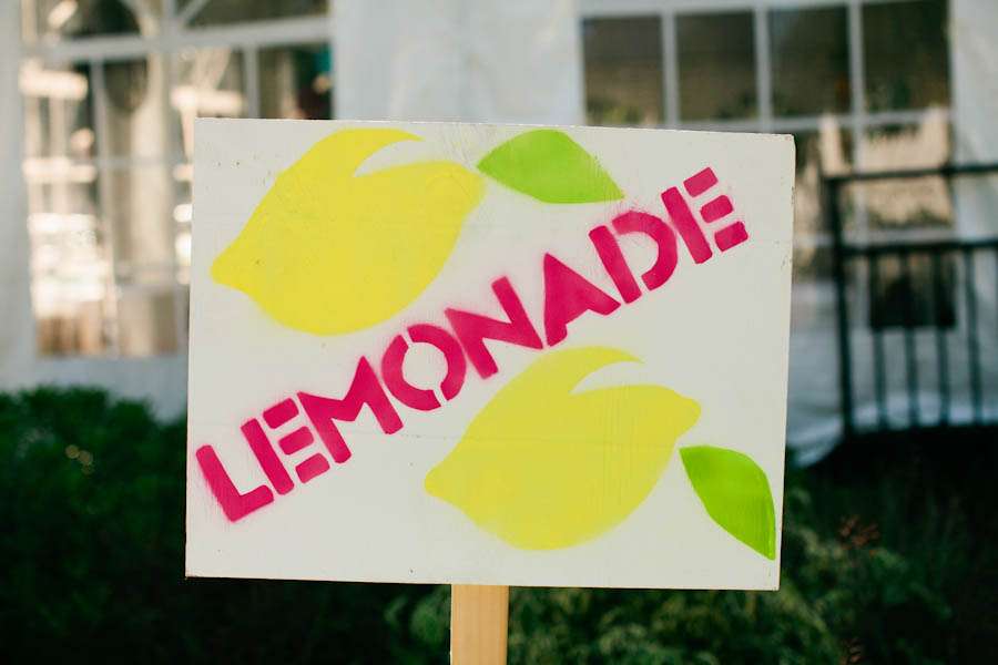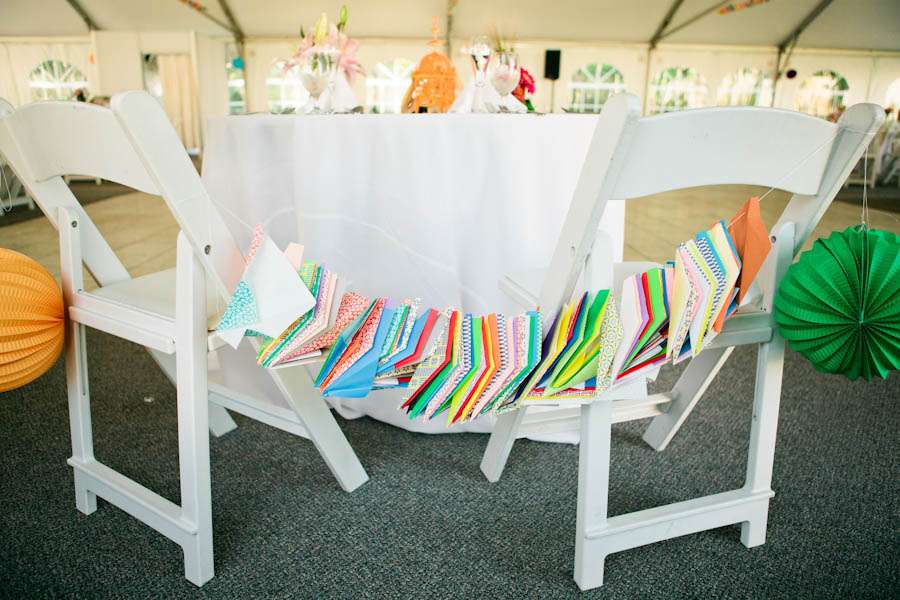 As for DIY projects, the couple called upon the help of their friends & family wherever they could. “Jason, his dad, and I made the lemonade stand and the cute signs from scratch”, Ali explained. “It was a serious project that I had a blast doing. We sanded, painted, cut, and molded pieces of scrap wood into a beautiful lemonade stand and a handful of adorable signs. I absolutely loved it. I also made 1,000 paper planes for the tent and for Jason’s boutonnière. A few years ago Jason’s cousin, Michael, was killed in a car accident. He was 20. He had been training to be a pilot and absolutely loved air travel. His favorite plane was a Cessna and at his funeral Jason’s family made origami planes to honor his memory. I never got to meet Michael, but he was Jason’s best friend and an important part of his family. I remember crying months before the wedding with Jason about how sad I was I never got to meet him, and how devastating it was that Michael wouldn’t be there. So I spent a total of 36 hours bending and folding multicolored origami planes to line the ceiling of the tent – so he would have a vessel to watch over us during the entire day. I also hid a photo of Michael deep in my bouquet so no one could see it, because I wanted to keep him close to me all night.”