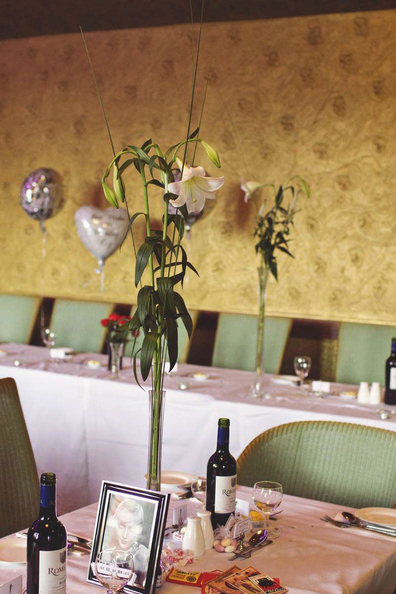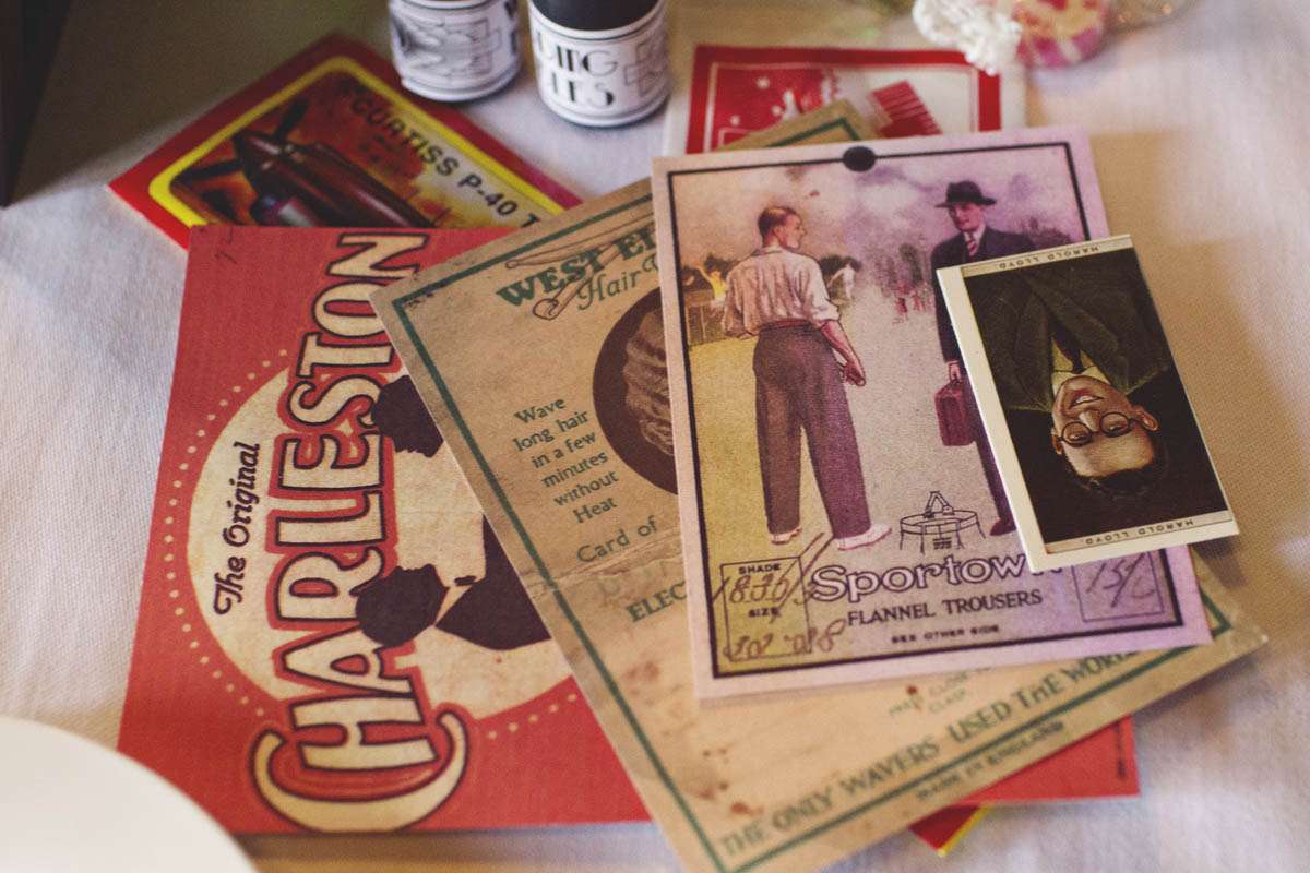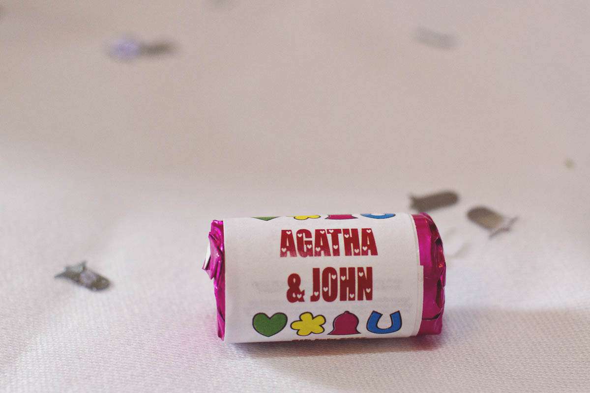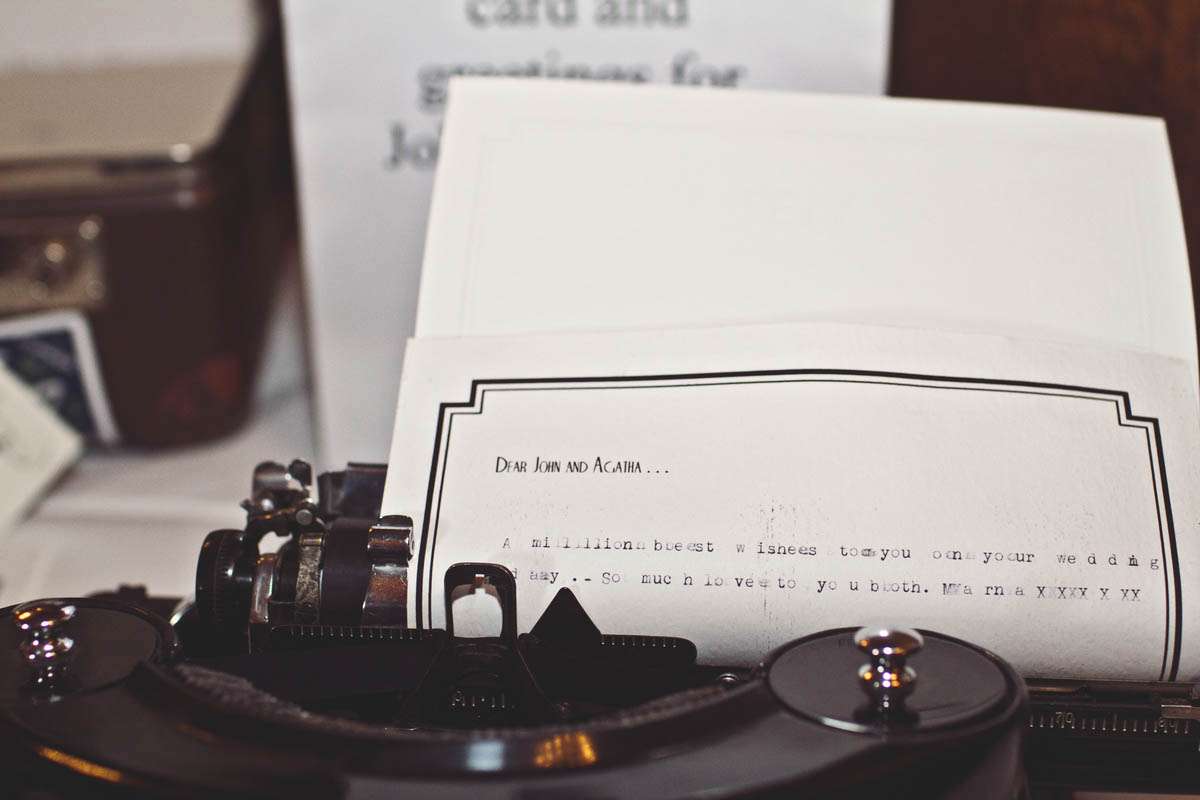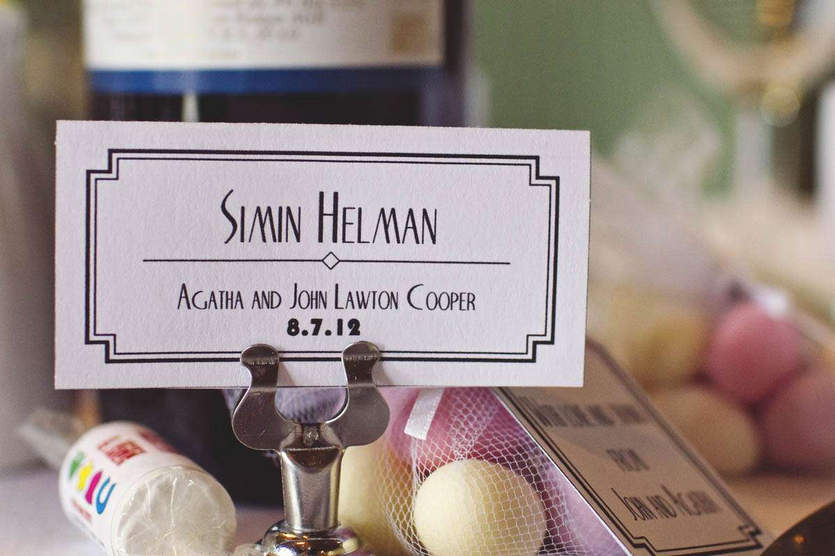 The couple knew they wouldn’t have to go overboard with the decorations as the venue was already so beautiful, but what they did choose needed to compliment the space. “We decided to have our tables named after 1920s & 30s actors and actresses”, Aggie explained. “We googled them and picked our favourites we then popped them in frames. John is an art and design teacher and used to work doing costumes for movies and model making. He did all of the wonderfully art deco wedding stationery.”