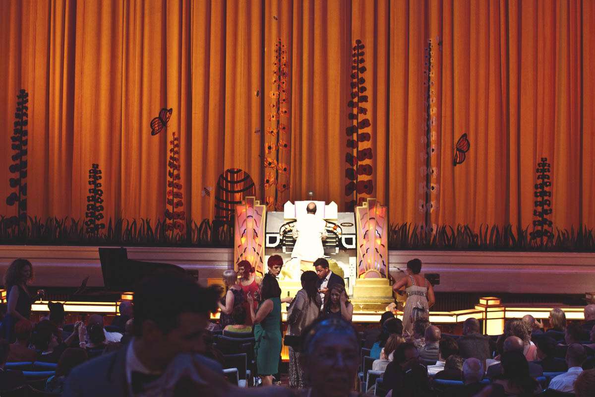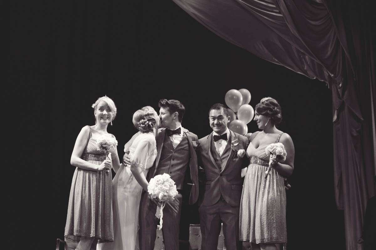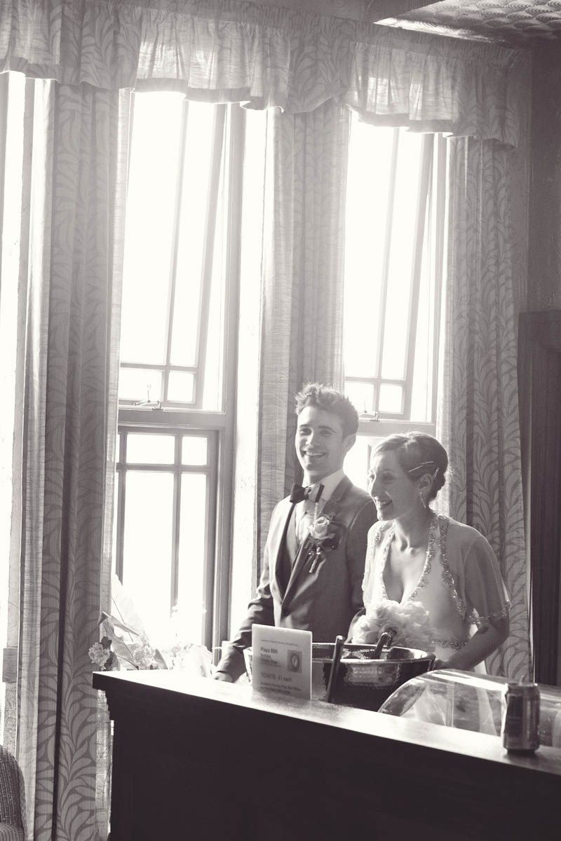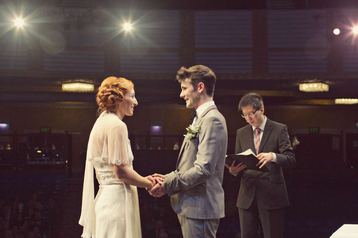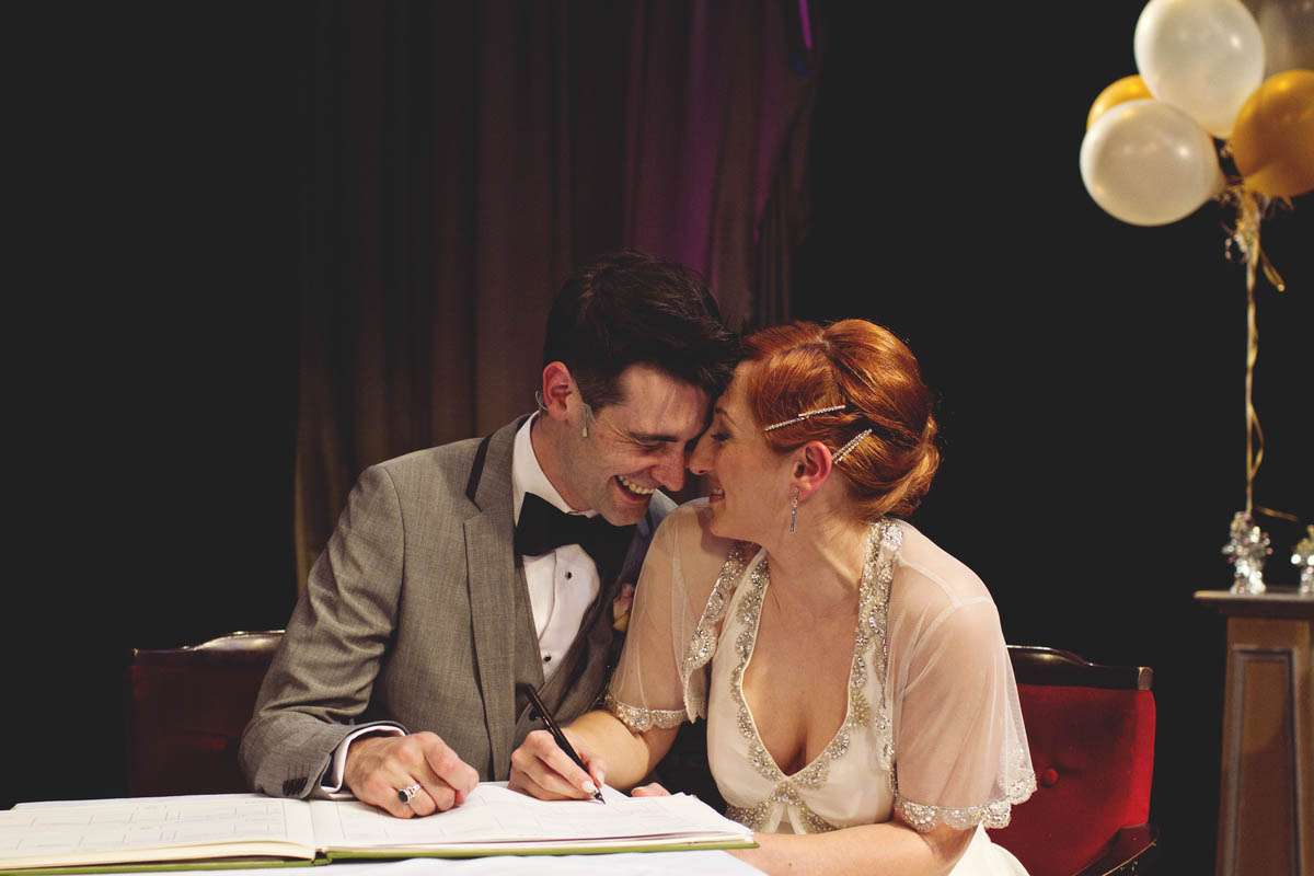 “I have always been captivated by and idolised the 1920s it may have something to do with my namesake (Agatha Christie) but I just love anything art deco the geometric lines and silhouettes”, Aggie continued. “John and I got engaged in Marrakech on New Year’s eve 2011 and originally I had always said that I would run away and get married somewhere exotic on a beach and have a very simple wedding. But we soon realised that our families would be disappointed if we did this and that elderly relatives wouldn’t be able to join us. For a Valentine’s treat I dedicated to book us tickets at the Plaza cinema for a dinner and to then watch the designated valentines movie ‘an affair to remember’. I’d always loved the Plaza since we discovers it year or so ago and we would occasionally pop in for afternoon tea in the tearooms. Seeing the Plaza at the Valentine’s night all decked out and with the lights a warm red made us think perhaps we could have our wedding there. We decided to track down Ted, the General manager, that night to enquire about the venue. Ted and his team were just brilliant with helping us to arrange the order of events and how things would work. They only had two dates remaining for the whole of 2012 – one in August which was already another of our friends’ wedding dates and the other which was Sunday 8th July – just four months away! We took it and decided that we had better get planning!”