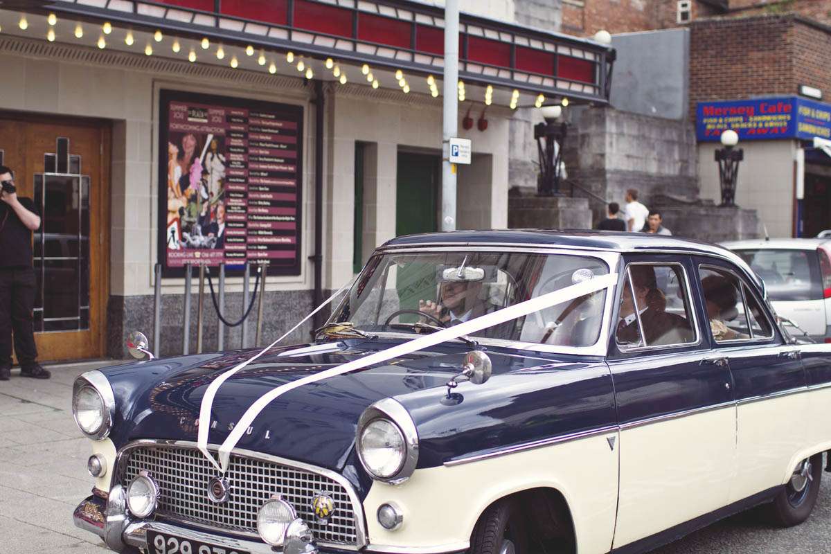 “On the day Ted organised for someone to pick me up in a wonderful vintage 1950s Ford Consul as we hadn’t a budget for a car but he offered to arrange it for a bargain £25 complete with Pete the driver in Teddy Boy gear! So we snuck in a nod to the 1950s – my second favourite era!”