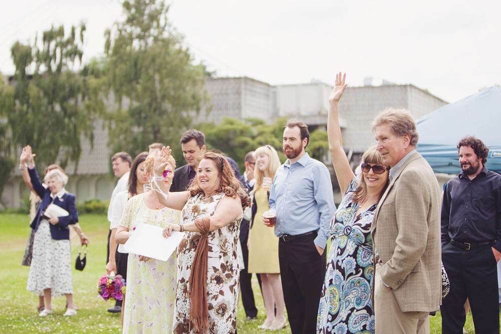 Friends & family showed up to the park to help set up the chairs and tables, and then at lunchtime the guests arrived for the ceremony. “Guests arrived at 12:45pm, we got hitched at 1pm and were heading for the airport by 2:30pm… one guest said it was like being invited to an elopement”, Teresa laughed.