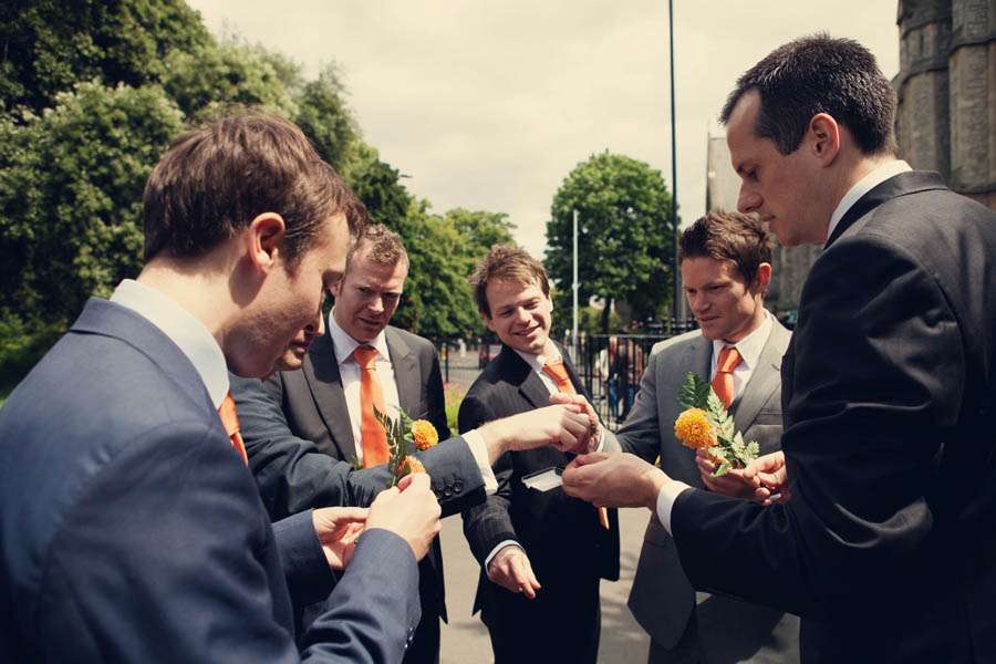 From the bride’s gorgeous 50s inspired dress, to the bridesmaid’s burnt orange numbers, the theme just really works. “Ever since we started planning the wedding I knew I wanted my bridesmaids to look HOT,” explained Laura. “Not pretty, not sweet, not floral, not vintage – just HOT! So, when I came across the totally original orange dresses in the Spoiled Youth collection by Aqua, I knew I’d found my weapons, and our wedding colour! I did hear on a couple of occasions that ‘I shouldn’t make my bridesmaids look too good, to make sure I look better’…What a load of crap!”