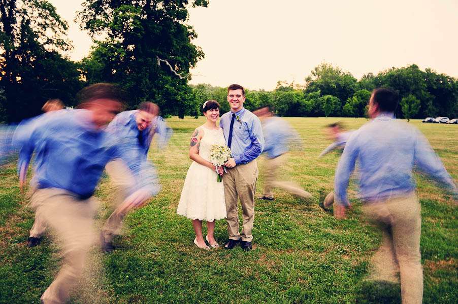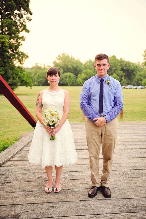 Sarah & Mike were married on the weekend after Independence Day. They wanted a relaxed wedding that was a celebration, and one that all their family and friends would enjoy. “I would describe our wedding theme as a ‘rural, homemade, Independence Day picnic’,” began the bride. “We first looked at historic mansions in the area but quickly realized they would be out of our price range and we wouldn’t have much flexibility customizing our wedding. They would pick the DJ, and we’d have to select a meal from their menu for example. Then, when driving home from Baltimore one night, we drove past a park in Carroll County that was covered with beautiful flowers and several 18th century buildings, including a working gristmill. We stopped and walked around and discussed how perfect this place would be to get married and we decided to look into it. Luckily, they did allow weddings and after all the quotes we had from the mansions we were shocked at how affordable this place was!”
