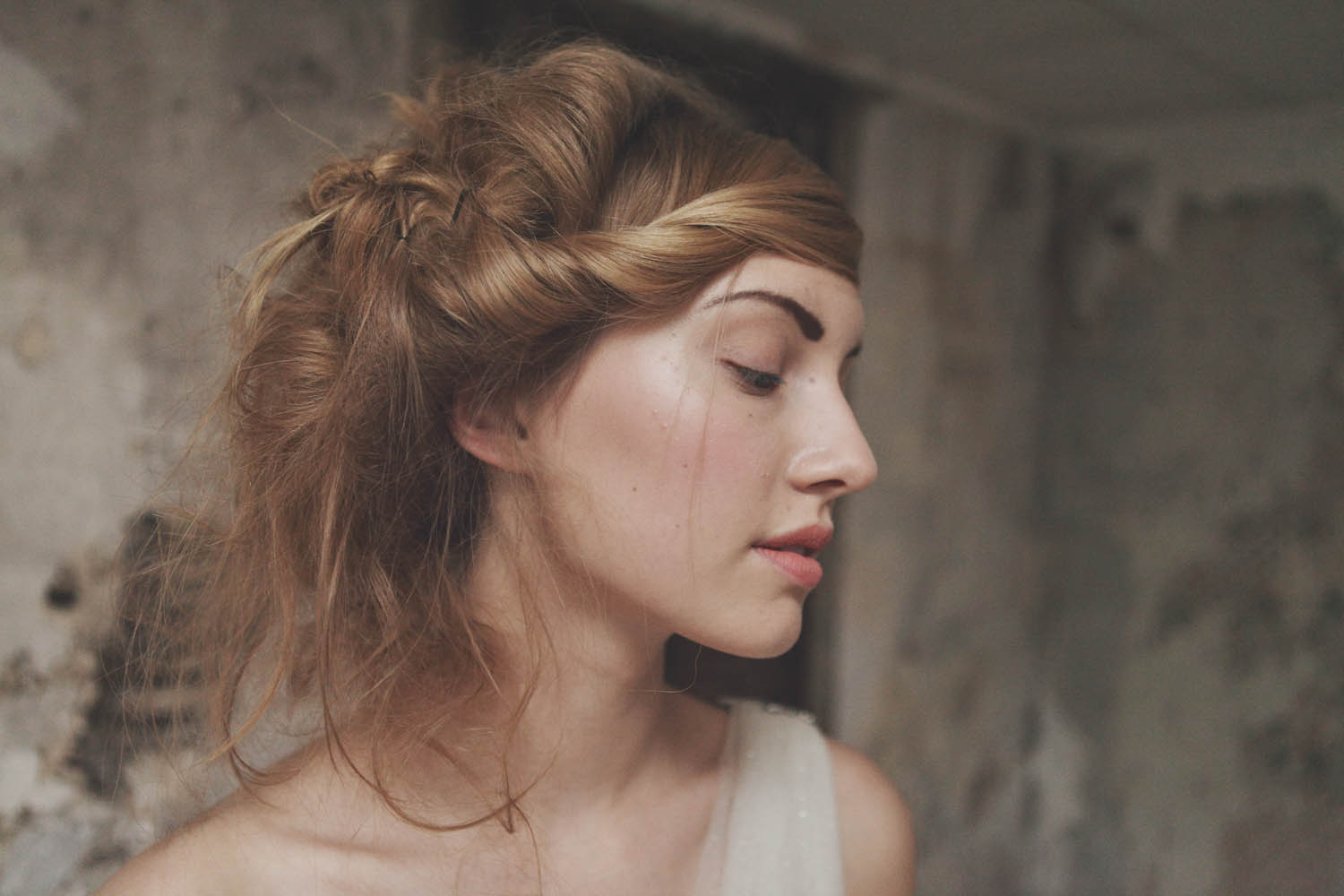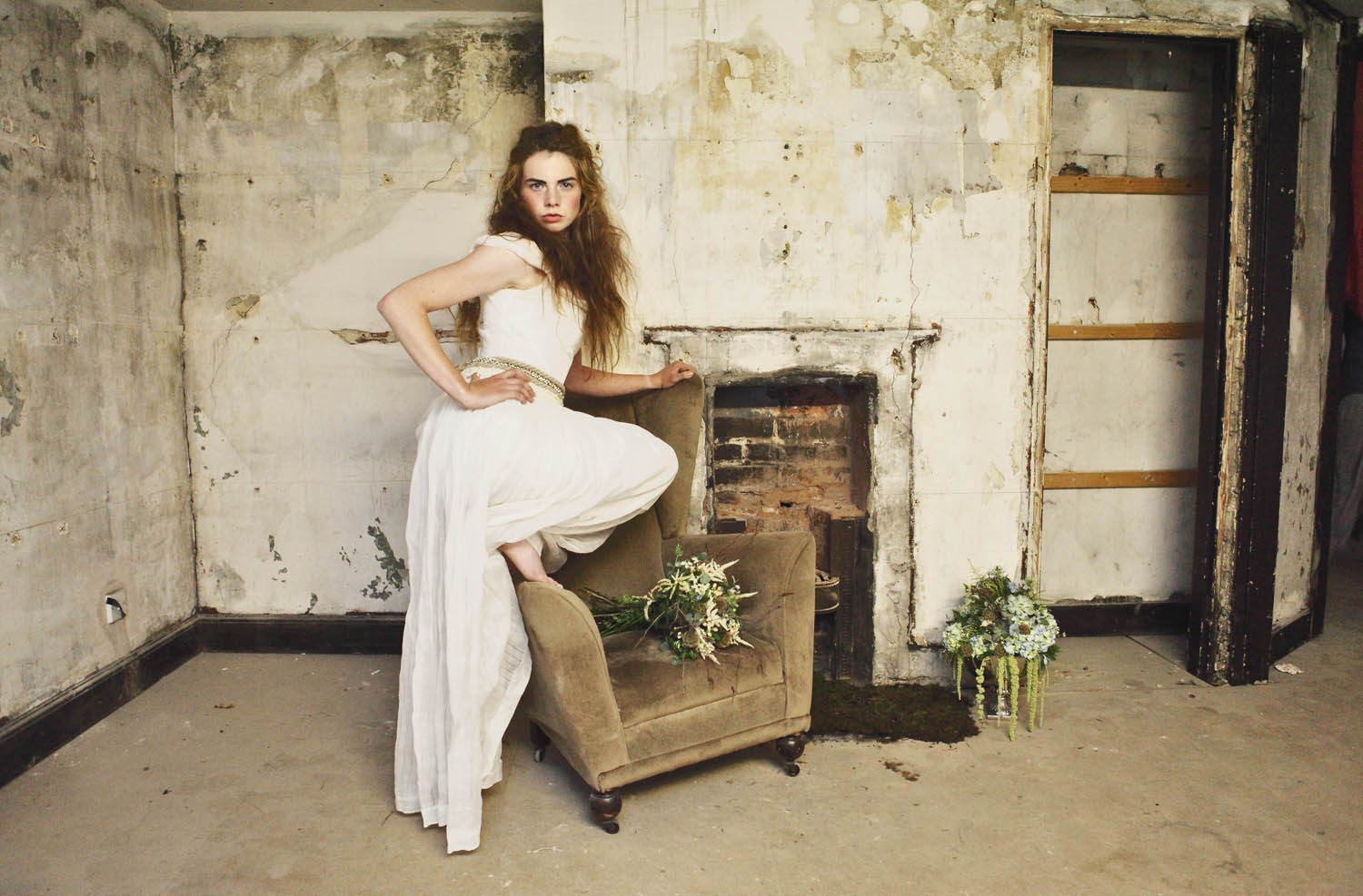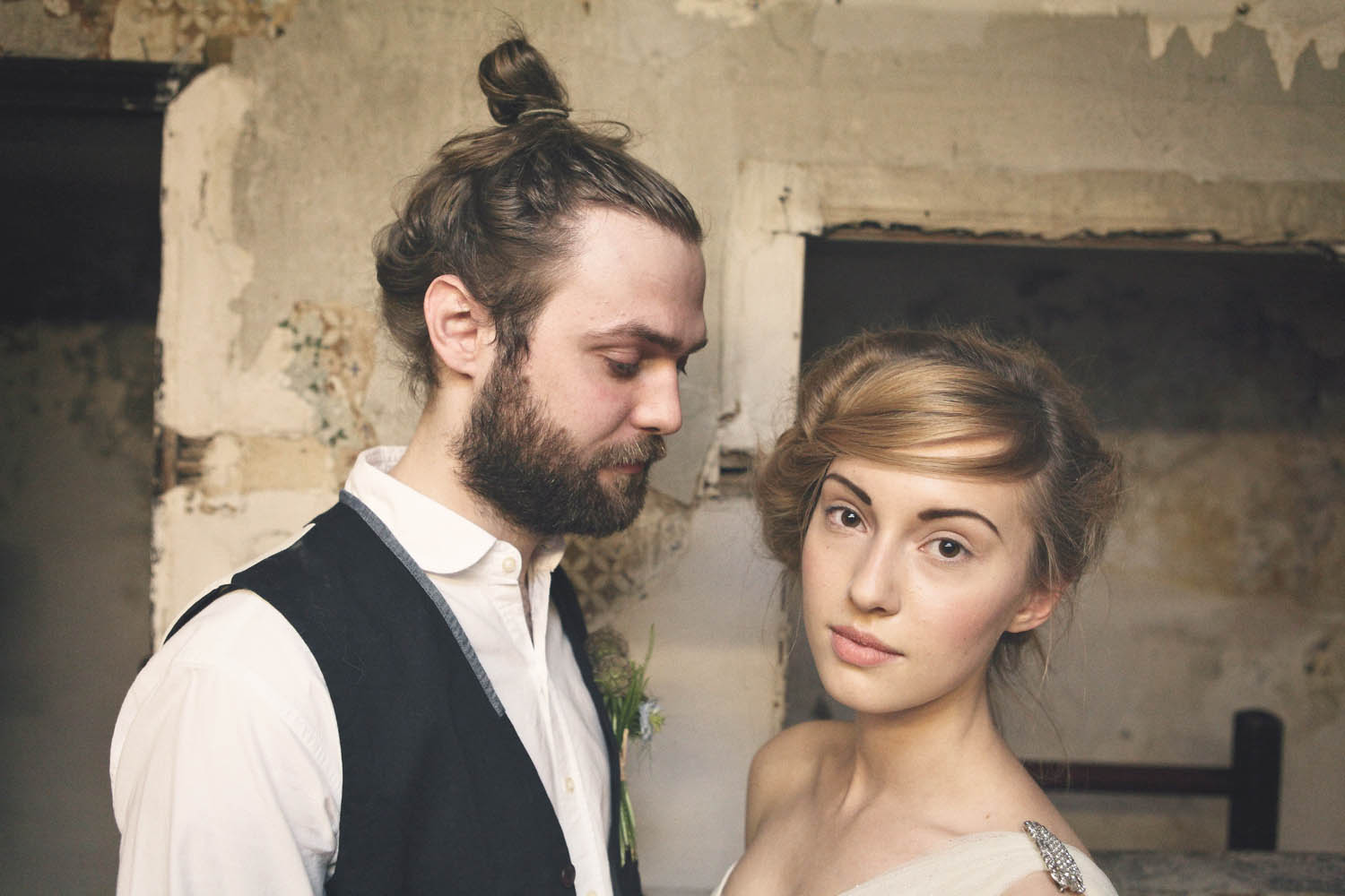 “Luckily our make up artist Nova of Milk & Honey, had put on an amazing night market event the month before, at a beautifully crumbling down and disused 18th century building close by, where the layers of wallpaper were in just the right state of shabby. If a battered, period house had been plan A you know that we would have spent years looking for this exact setting, so when adjusting our mindset from Max and his Wild Things to something more akin to Wedding Creatures in the Attic, we realised how lucky we were to have it.”