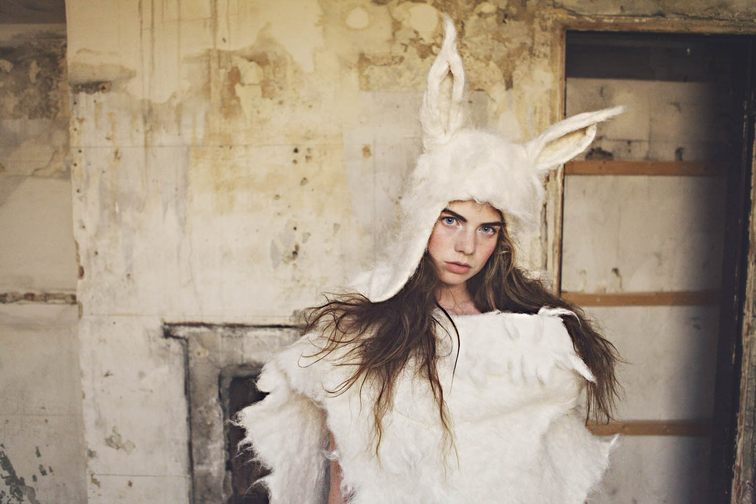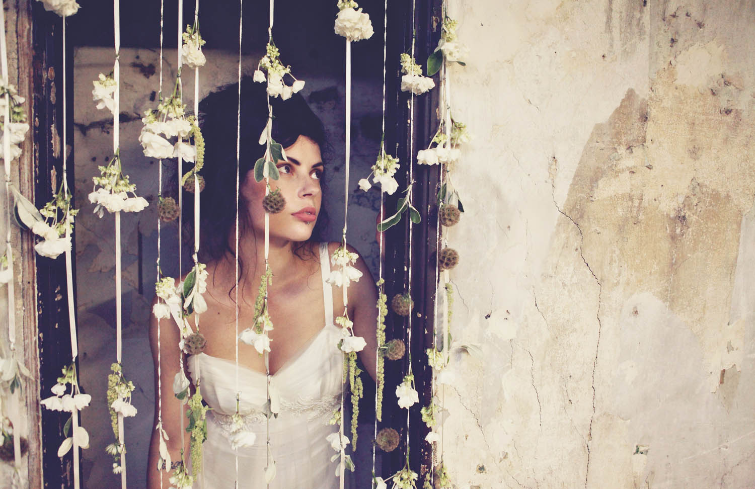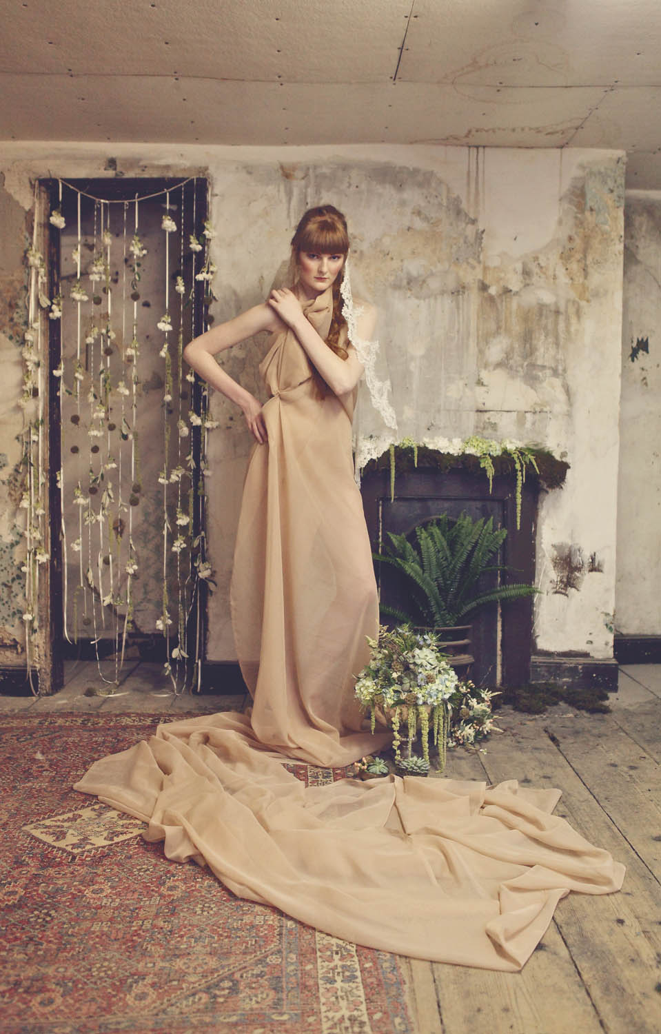 “Luckily our make up artist Nova of Milk & Honey, had put on an amazing night market event the month before, at a beautifully crumbling down and disused 18th century building close by, where the layers of wallpaper were in just the right state of shabby. If a battered, period house had been plan A you know that we would have spent years looking for this exact setting, so when adjusting our mindset from Max and his Wild Things to something more akin to Wedding Creatures in the Attic, we realised how lucky we were to have it.”