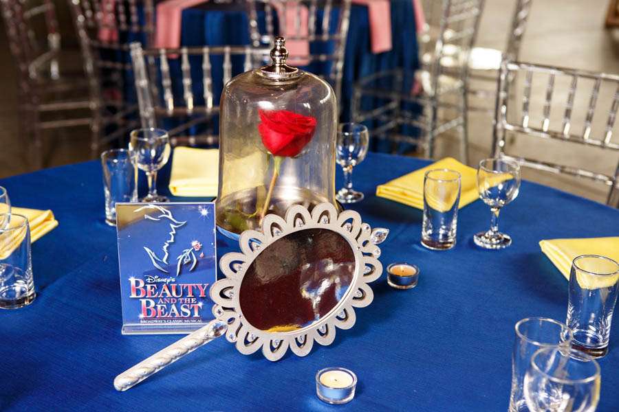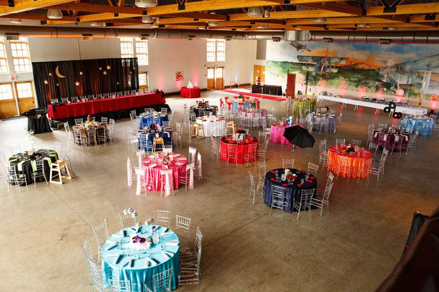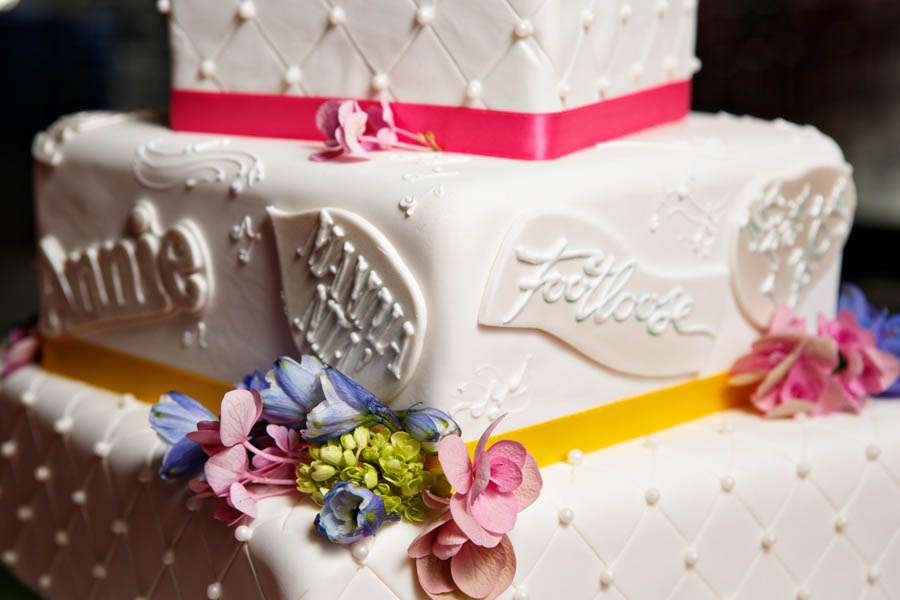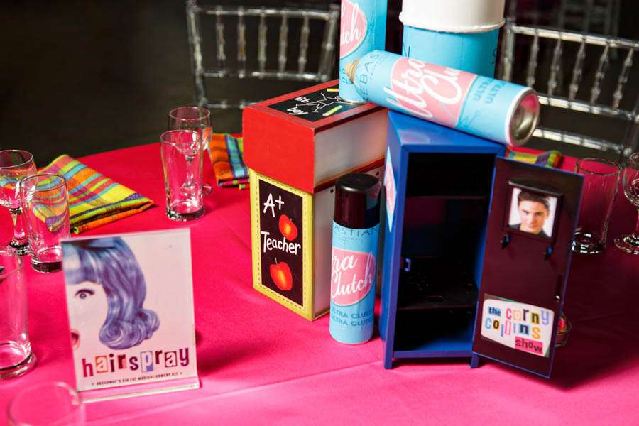 The ceremony was held in Hastings Lake Gardens and the reception was at Fort Edmonton Park. This venue was an old aeroplane hanger which provided the perfect blank canvas – and plenty of space for their party. Guests were greeted by a red carpet and ‘paparazzi’ as they entered, and given tickets to the ‘show’. From the ticket booth to the cake, and Rocky Horror Bar to the Daddy Warbucks dessert table, every element of the decor was in-keeping with the theme. Each table was styled differently, each inspired by a different Broadway musical, including My Fair Lady, The Wizard of Oz, Grease, Legally Blonde, Wicked, The Lion King, Mary Poppins and Mamma Mia. Which is your favourite?!