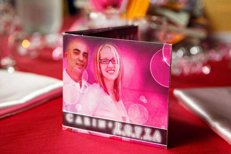 When Carin & Pouya got engaged, the bride instantly knew what their wedding theme would be – Broadway musical! “I have always loved Broadway musicals and three years ago Pouya took me to my first live production – The Wizard of Oz”, Carin writes. “I was instantly hooked! Since then I’ve got season tickets to Broadway performances across Canada including our hometown of Edmonton. I never thought of incorporating that into the wedding, but after a while the Broadway musical theme came to me while I was bored one day in a class in University. I was looking around on the internet when I saw a wedding program that looked like a playbill and the ideas spiraled from there!”