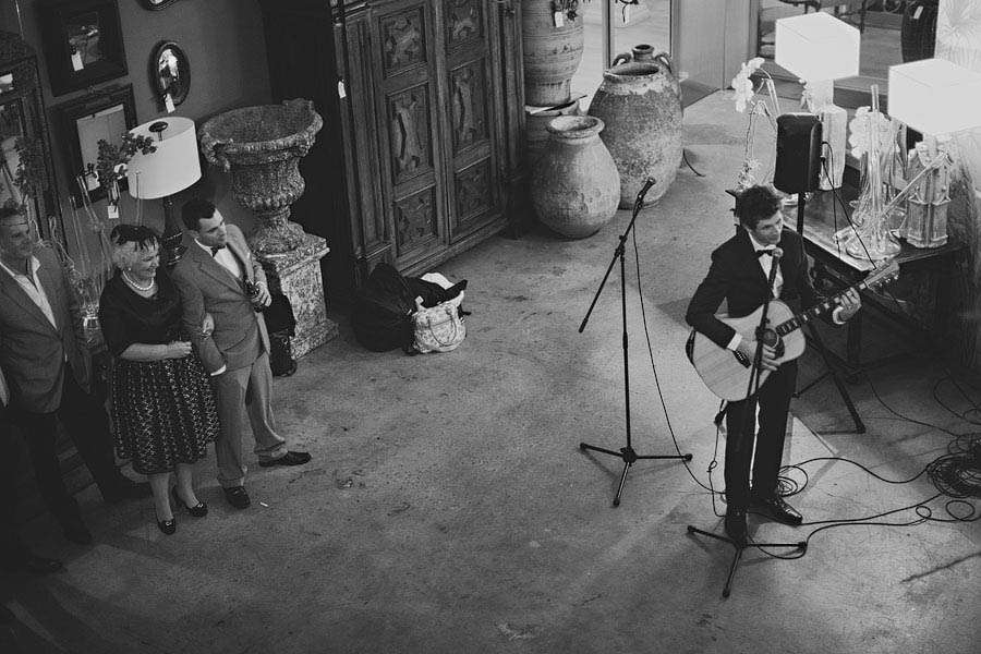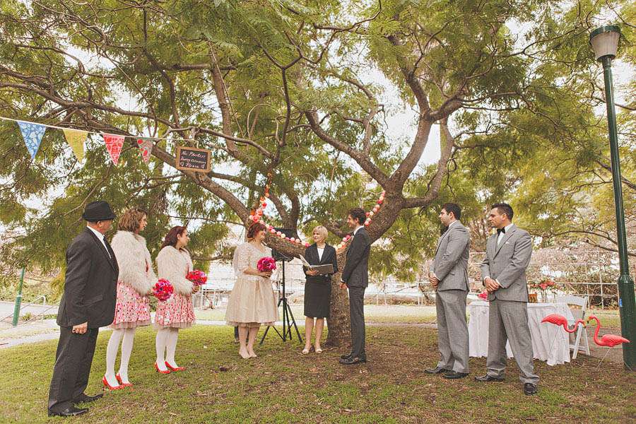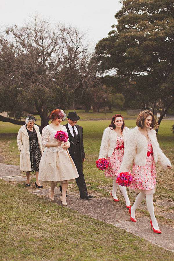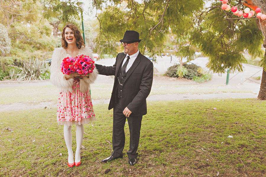 The ceremony was held at the NSW Writers’ Centre and their reception was at The Country Trader, an antiques warehouse. “Jack and I are both quite shy, so we wanted to keep our ceremony to the bare minimum”, continued the bride. “I walked down the aisle to ‘Here Comes Your Man’ by the Pixies – I think the whole ceremony lasted seven minutes.”