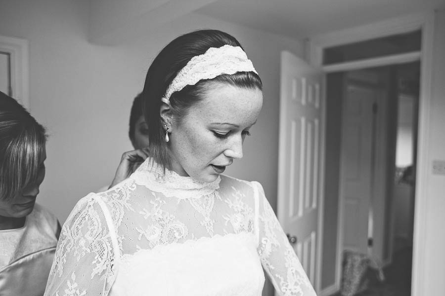 Andrea wore a vintage inspired dress from Lily-An, an independant dress maker. “We went a bit little vintage with our theme”, she explained, “but we didn’t go OTT! My dress was pretty different, vintage inspired and amazing! One of my best friends, Christina, gave me a wedding magazine about nine months before the big day, I think she was trying to give me a hint that I needed to start organising some of the details. When we were flicking through it over lunch I saw a picture of a dress which was short, with a high neck. I loved it because it was so different. I took the picture to Lily-An and we had many, many conversations and fittings until we figured out how to make the dress look the way I wanted it to. My mum and I bought the Chantilly lace and silk satin from Craftswoman Fabrics & Products in Ballylumford and Lily-An worked her magic to make the dress into what I wanted. She was wonderful, and out of all the dreams that I’d had in my head for the wedding, she really made that one come true.”