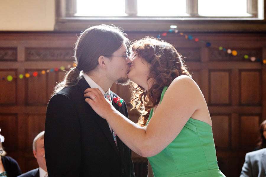 ‘But what about the rainbow-awesomeness?!’ I hear you cry, well… “Taking the living room idea one step further – our colour scheme was inspired by our own living room curtains!” Ruth laughed. “Neither of us could choose just one colour so we choose all the colours! The polka dot bunting was put up all over the ceremony room so everyone was surrounded by our curtains.”