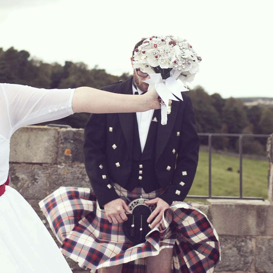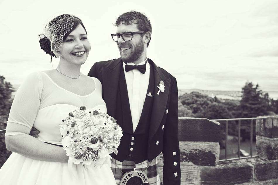 The wedding was held in Dundas Castle, Edinburgh, and although clearly a Rock n Roll worthy wedding, the couple chose to have a few traditional Scottish touches like the kilts, the castle and the bird of prey! The couple hail from California but loved the Scottish influence so much they decided to travel there for the wedding. “I took a lot of inspiration from Rock n Roll Bride”, wrote Anna, “it was the only website that didn’t make me what to tear my hair out!”