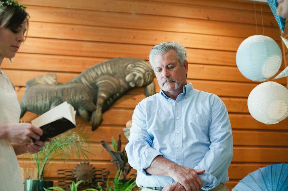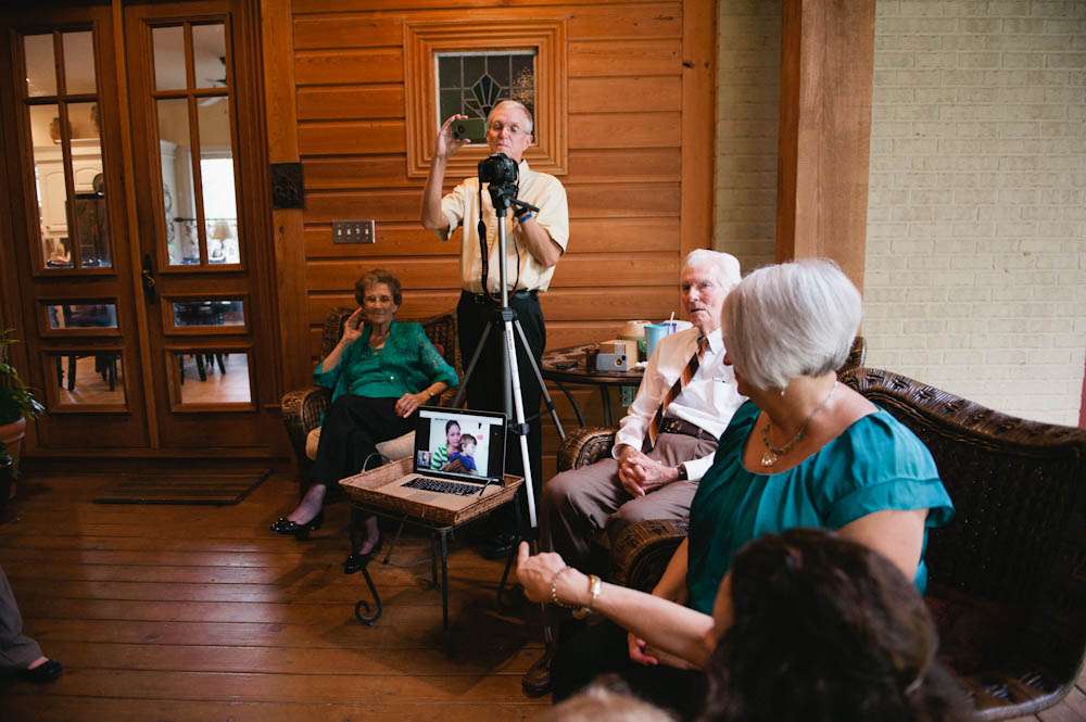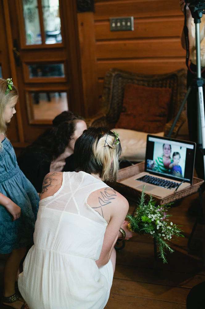 Taylor & James kept things small… tiny in fact. They were married at home, the bride’s father officiated, and their only guests were their immediate family – 6 adults in total, with one extra, Taylor’s sister, who watched the ceremony over Skype.