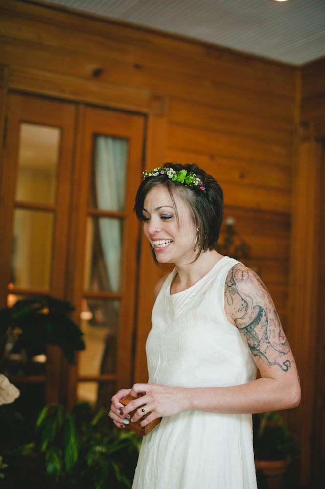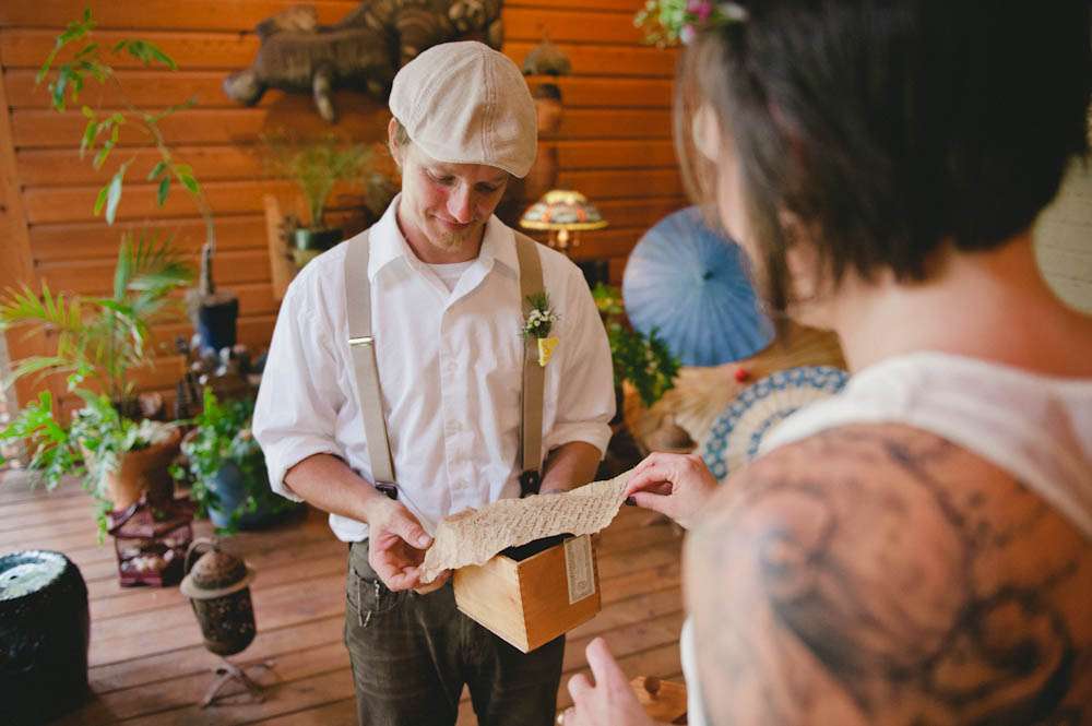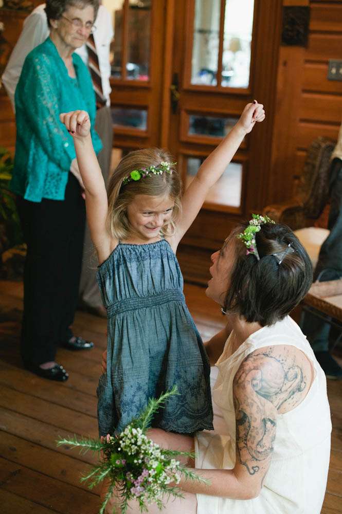 “In all reality, our wedding budget was $0,” Taylor laughed. “At one point we had started planning a beach wedding (where James proposed to me for like the third time when I finally said yes!) But life being life, any time we would set money aside for the wedding something would break and that money would need to be spent. It got to the point where James and I decided we were just going to the courthouse in our overalls and steel capped boots and just be done with it. We wanted to be ourselves and have fun. We didn’t want to spend money on a wedding and in all honesty, we are much happier with new tools! So, having said all of this we decided to do a super small, intimate wedding… which included our parents, our daughter Helmi, our son Modi, and my grandparents.”