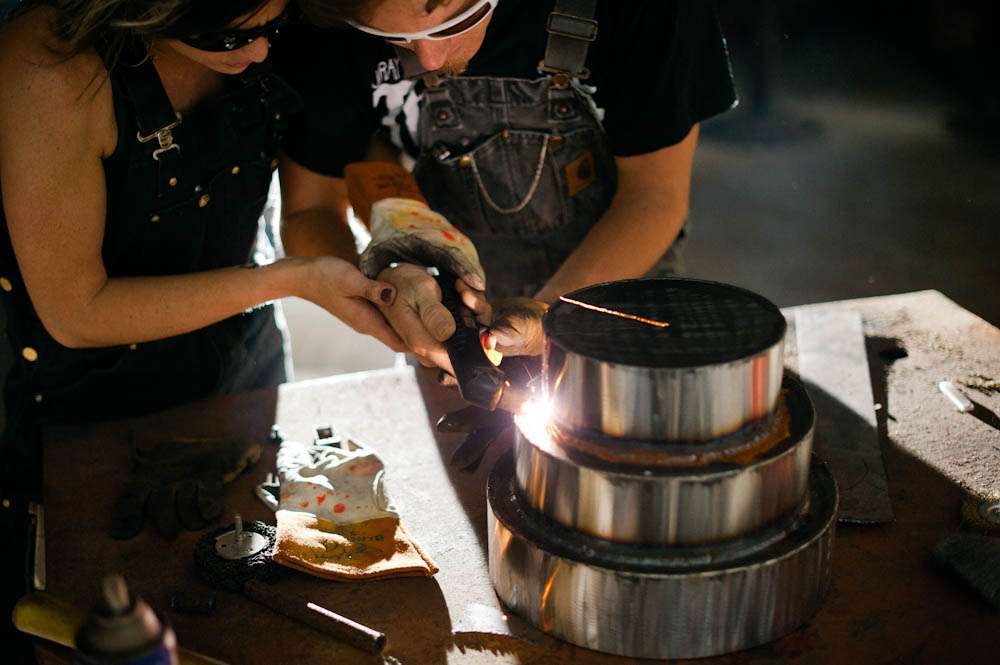 “We are who we are and we do what we want,” explained Taylor, “so I guess that makes us Rock n Roll! The things that make us happiest about us is that we have metal dust running through our veins… literally probably at this point! Casting was one of the first things I realized that James and I both were in love with. I gave James iron ore as part of his wedding gift… it’s what iron truly is at its core. It’s beautiful and it comes out of the ground. It’s probably the most meaningful gift I could give anyone ever that shares that love with me.”