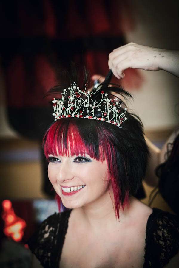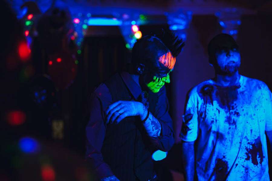 As the evening got underway the bride, groom and all the guests went off to change into their scary outfits! “For the evening we decided to have full on Halloween fancy dress. We are both crazy about all things horror and Halloween (many of the decorations and props used to decorate the room were from our own house, where they are used as permanent decorations). We were amazed with the effort that everyone put into their outfits especially as our wedding was in the middle of summer when Halloween outfits are hard to come by! We also chose all of the music ourselves, consisting entirely of rock, metal, goth, and 80s electro.”