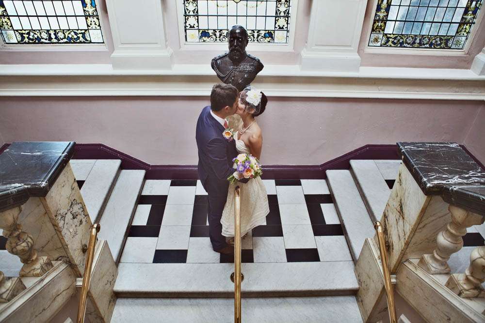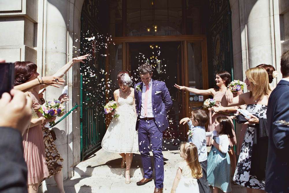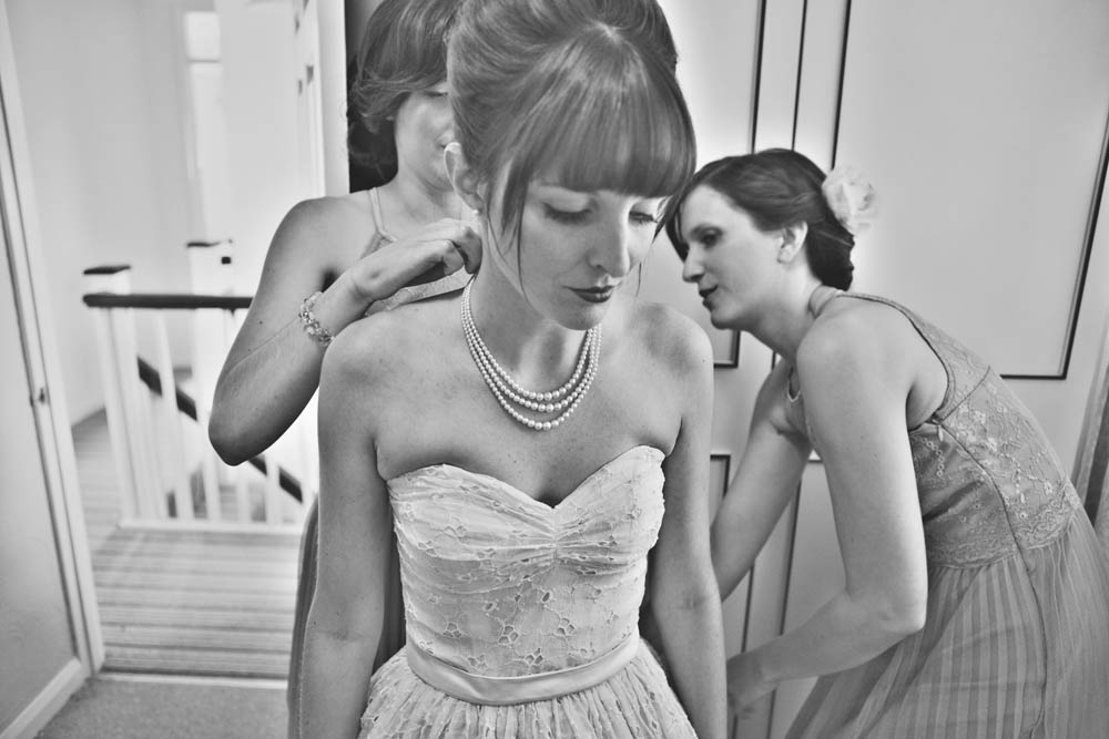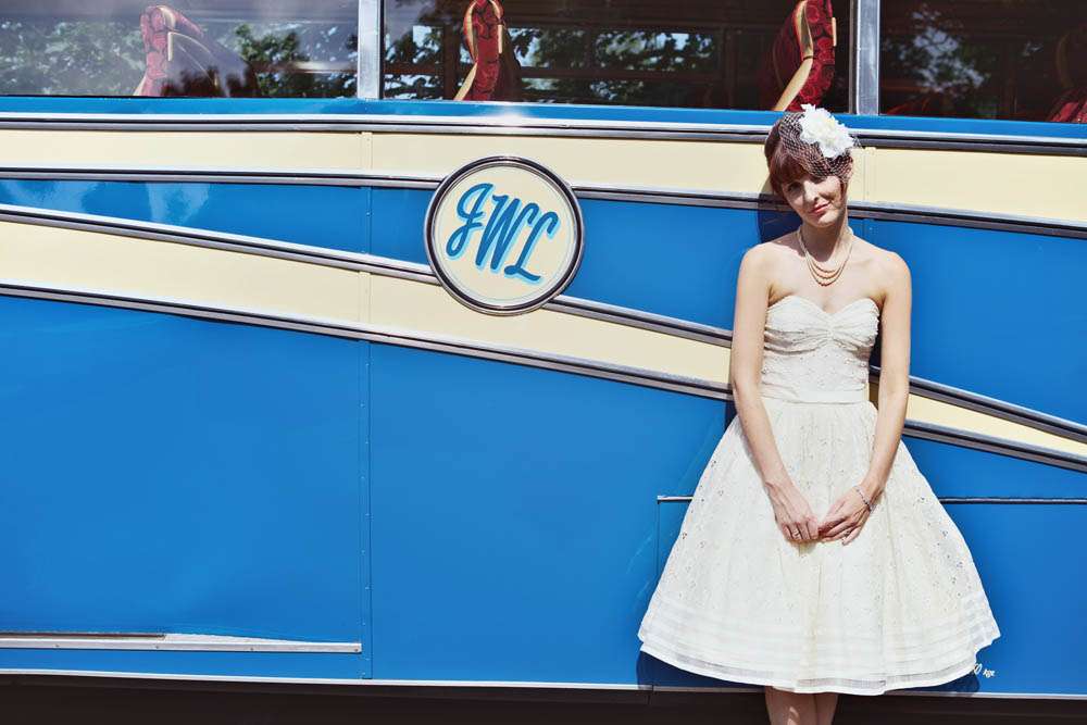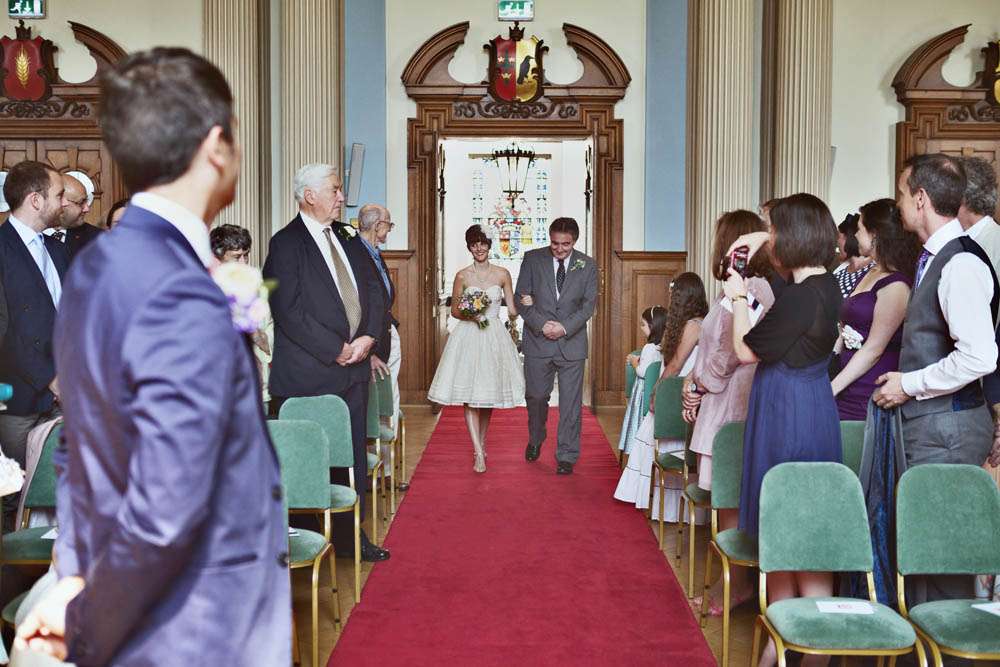 Emily got her dress, headpiece and jewellery from vintage wedding dress shop Fur Coat No Knickers in Central London. “I discovered the shop through Rock n Roll Bride and loved it the second I set foot in the shop. I only visited two other shops but everything else felt synthetic and swamped me in comparison to my gorgeous 50s dress.”