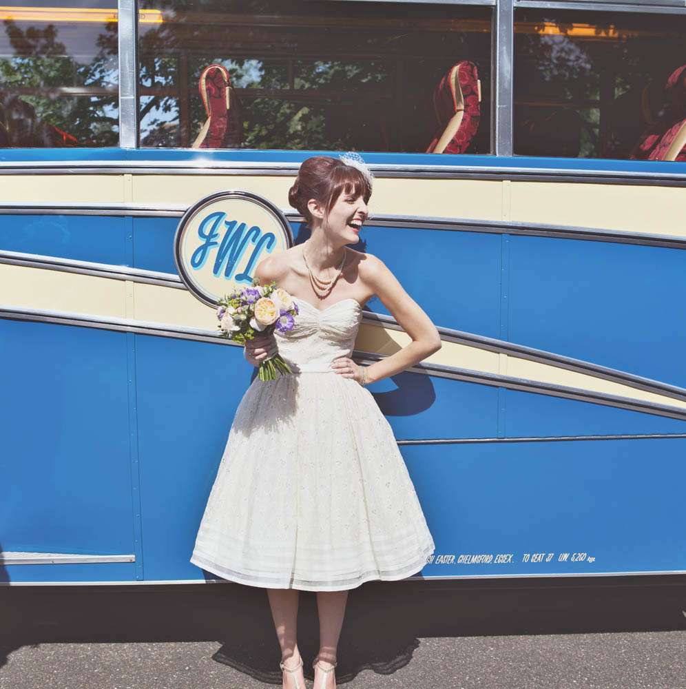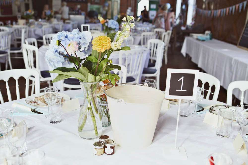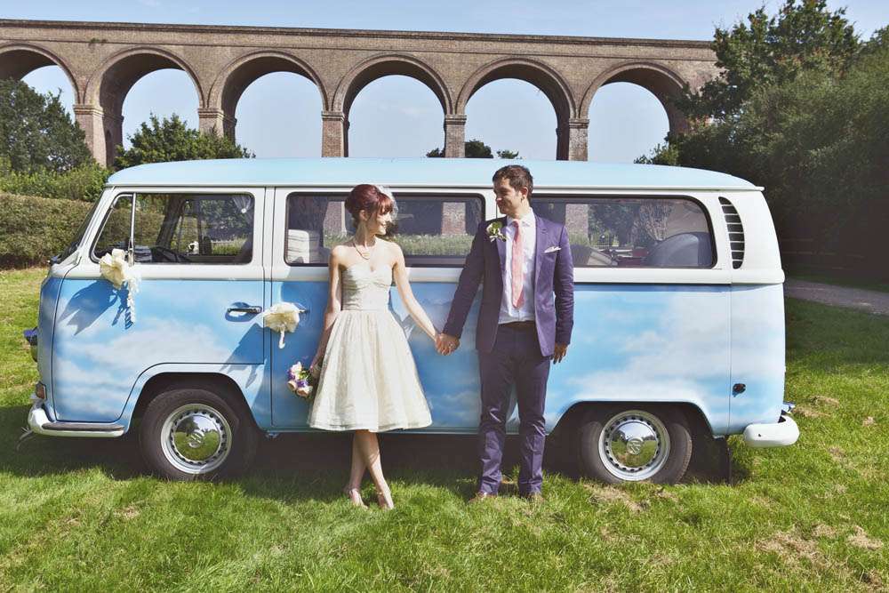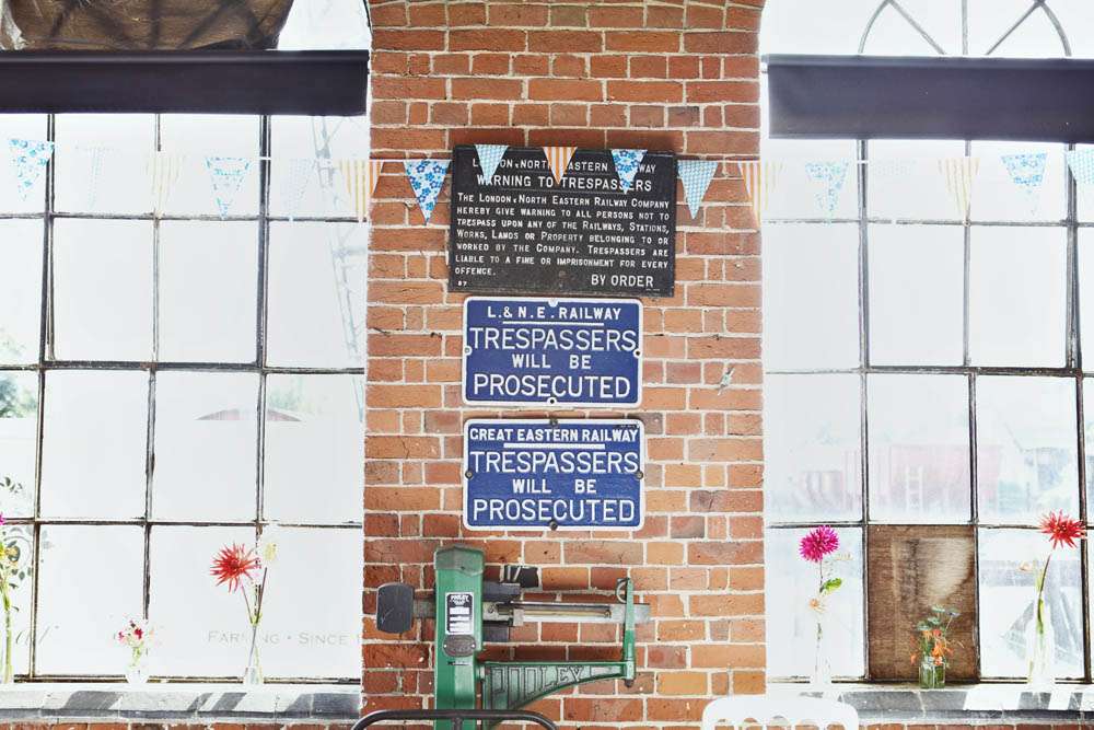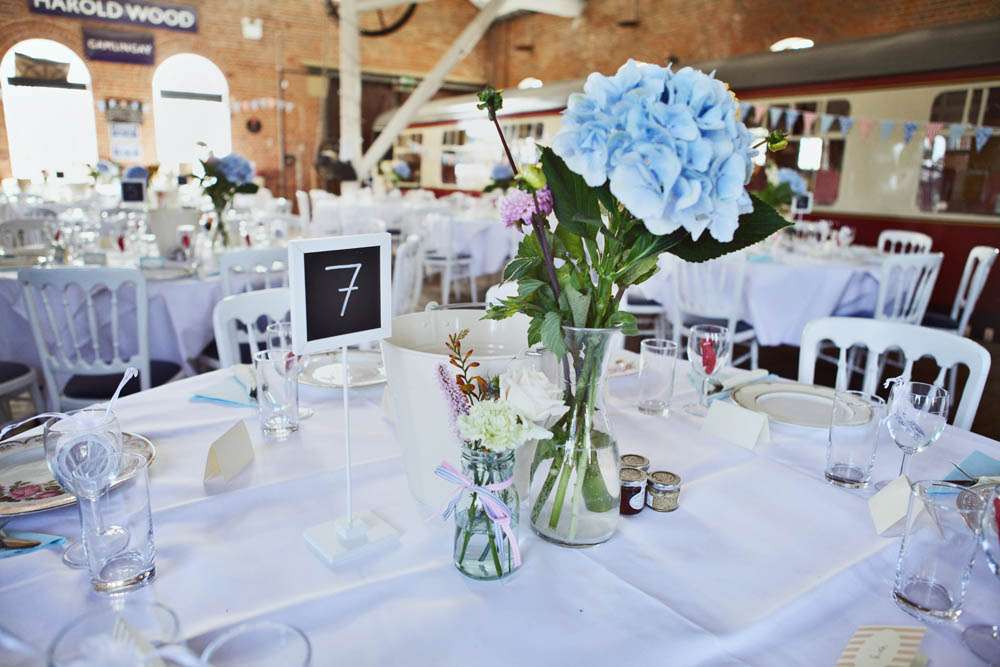 “Our wedding was inspired by anything British and quirky and so I guess it also had a vintage edge. Everything was locally sourced and the blue and white of the train station signage influenced our colour choices. We even stayed in a 1930s gypsy caravan as part of our honeymoon.”