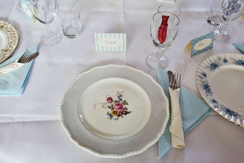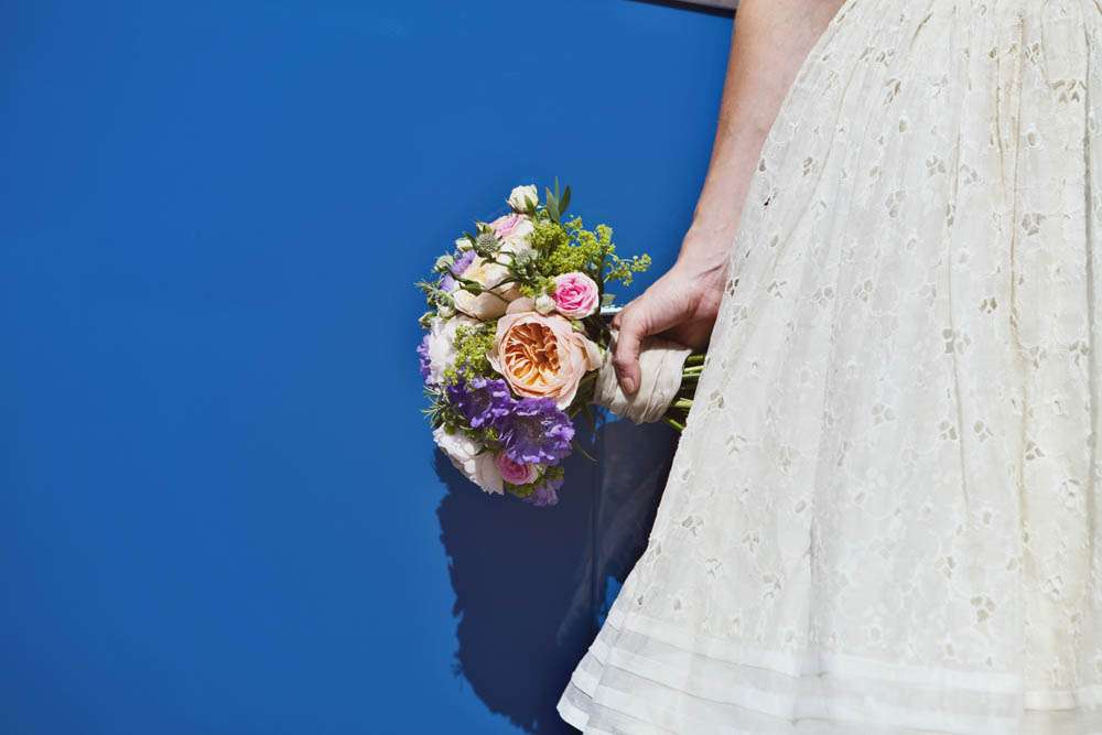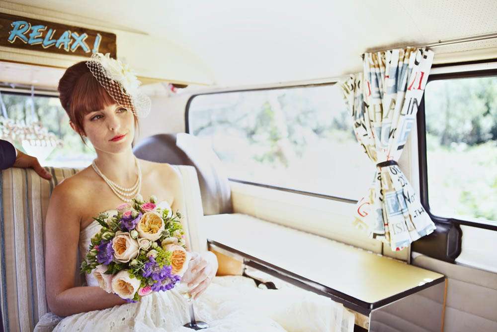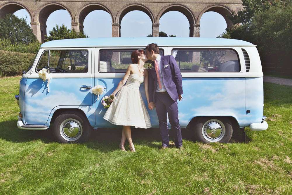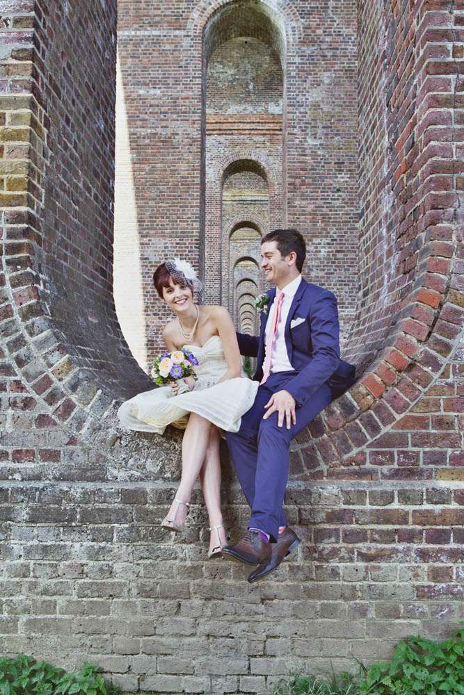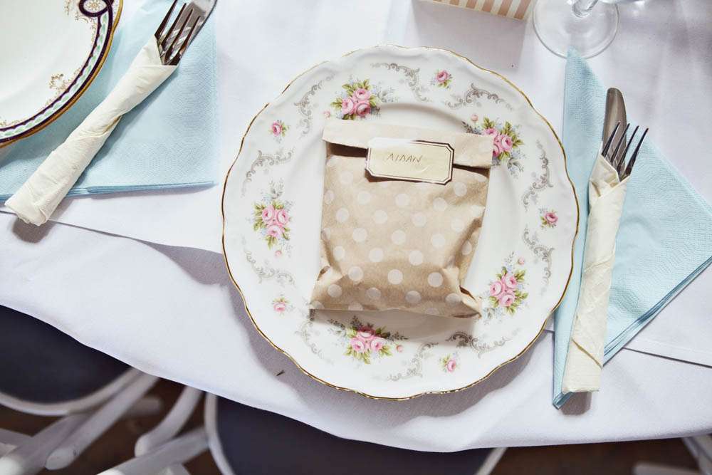 “Our wedding was inspired by anything British and quirky and so I guess it also had a vintage edge. Everything was locally sourced and the blue and white of the train station signage influenced our colour choices. We even stayed in a 1930s gypsy caravan as part of our honeymoon.”