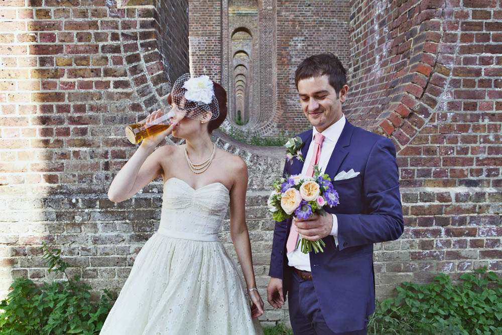 “A lot of Essex weddings can be quite princessy!” Emily laughed when I asked her about the details of their day. “We just wanted to share a magical setting with our friends and family and bring together all of the things we enjoy without any pretentiousness – simple delicious food, beer and an indie disco. We certainly had a few converts by the end. I didn’t DIY very much to be honest as I don’t have the patience and I really didn’t want things to end up looking over-done with signs and decorations everywhere – a 1950s train carriage is a pretty good decoration! But I’d like to think I am skilled when it comes to delegating!”