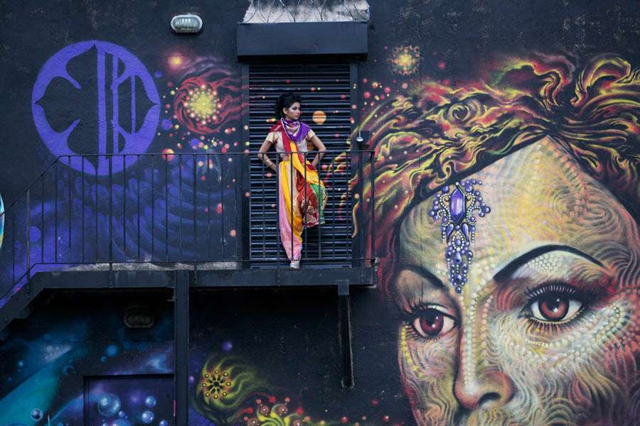 “We wanted to keep some bridal elements of course like the dress and the henna, but by hitting the grimy streets of Manchester and experimenting with the hair and make up we fused the traditional Asian bride with an urban element.”