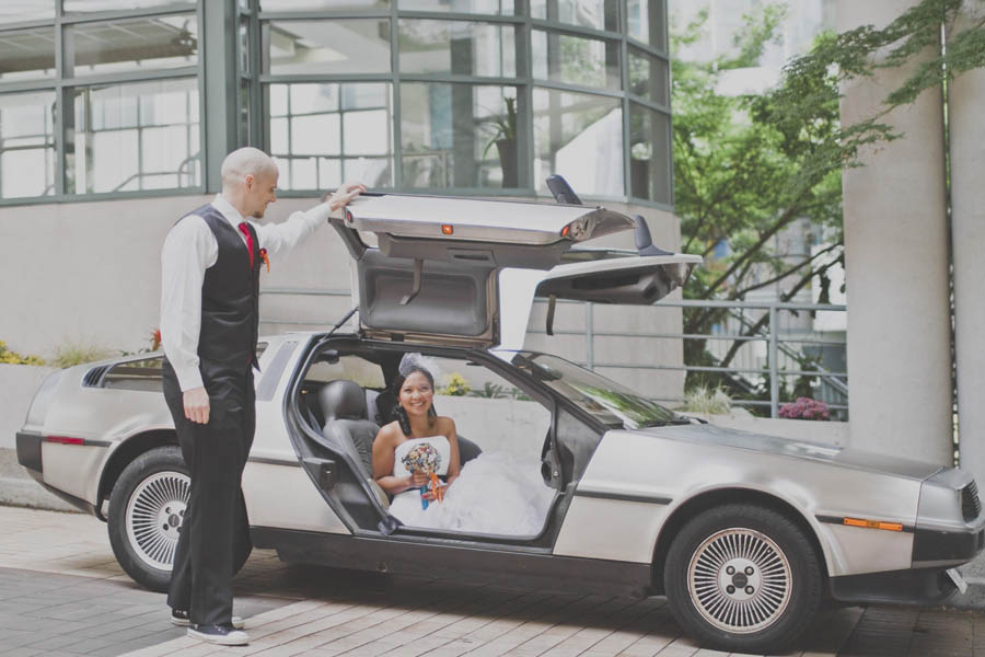 The Canadian couple were married at The Ironworks Studios in Vancouver. “The Ironworks used to be an old iron factory near the train tracks just outside of Gastown,” began the bride. “It’s now an eclectic venue used mainly for concerts and TV or movie shoots. We went to our friend’s book signing event there a few years ago and when we started talking about venues, the Ironworks was the place we both thought of first.”