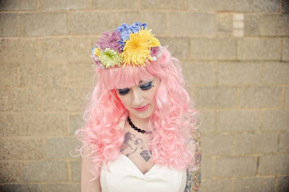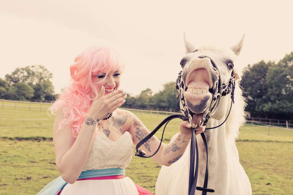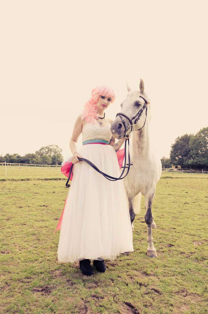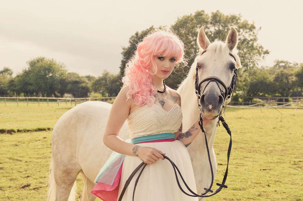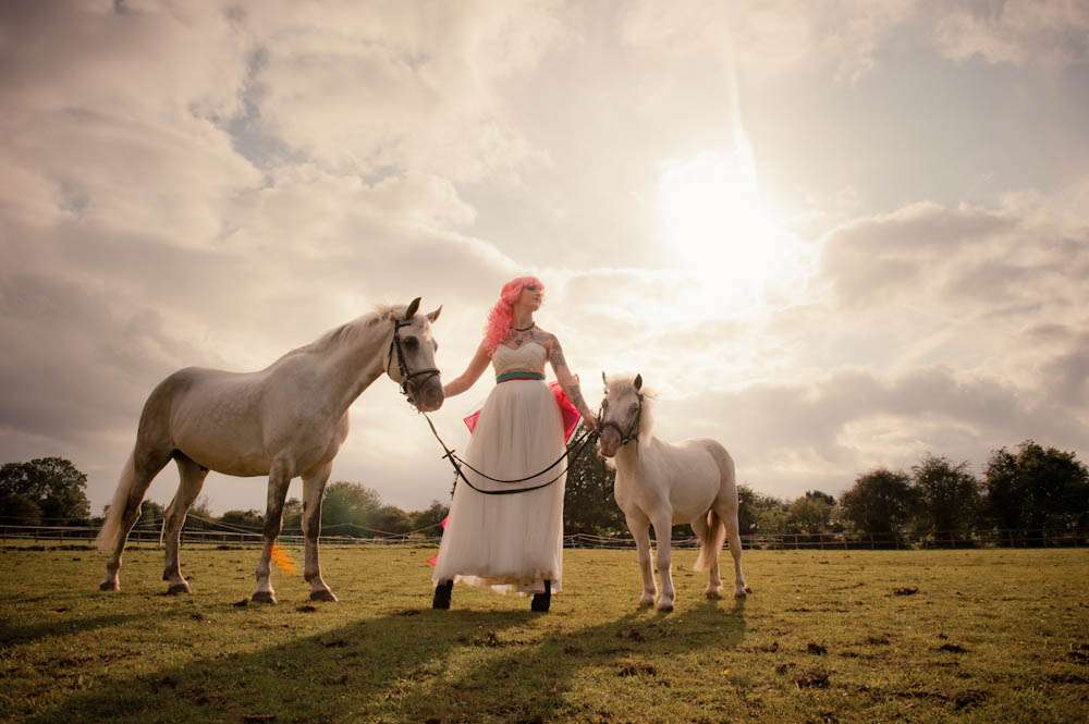If someone was to ask me to list my favourite things tattooed brides, bright rainbow colours and cute, furry animals would all fare pretty high on my list. So needless to say I didn’t hesitate when I was sent this bridal shoot by wedding photographer Martin Hobby!