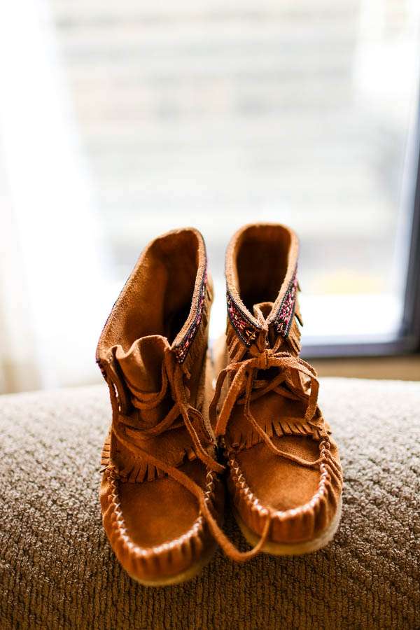 “I can’t tell you how much I dislike the tacky and typical weddings”, Kari concluded. “They looked outdated to us and are so overdone. I knew I disliked satin, crystals, charger plates, huge centerpieces, chair covers, bows… and all of those aspects that seem to accompany most weddings. So we knew we wanted to be as far away from that as possible. We didn’t want anything that would clash with log walls and the taxidermy that was already at our venue. It had to be very basic and appropriate. The venue has antiques and photos of pioneers all around, so I wanted to make it feel like this was a wedding that could have taken place back then.”