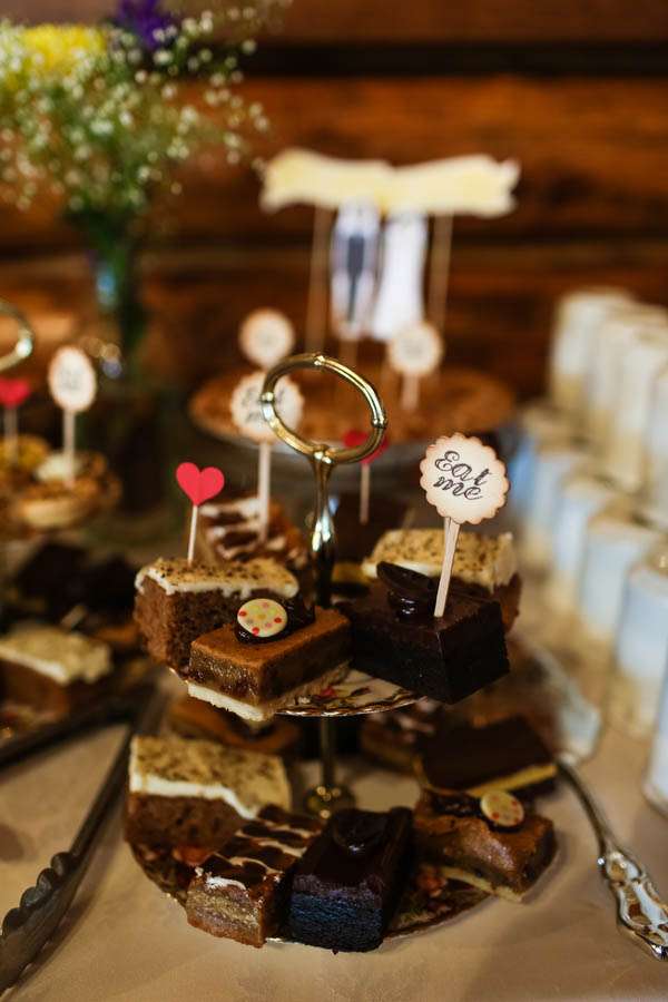 The couple then planned their wedding theme around the venue. It was important to them to have a wedding that was authentically their taste, but that was also sympathetic to the spectacular surroundings. “Our theme was based around our venue”, Kari continued. “Classic, old fashioned and simple. It was as if we got married on a ranch and picked flowers from the garden and threw on our Sunday best. We handmade all the stationery and painted milk glass vases, blackboard signs, picture frames and blackboard menus. We also felt that flowers were a big waste of money, so found a flower market that sells all their weekly stock on a Saturday. We weren’t picky as to the types of flowers we had so we got all of the reception décor flowers for $25! We spent a little more on flowers for the bouquets because I had specific ideas on what I wanted to make. In total we spent just under $150 on flowers for the whole wedding. I also hand made all the boutonnieres myself.”