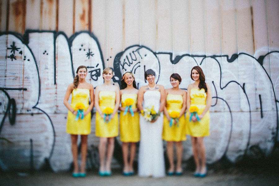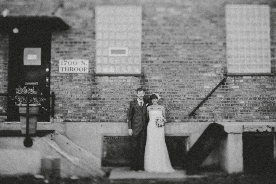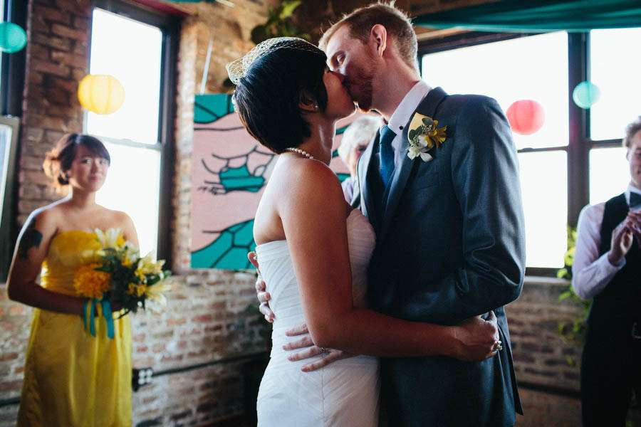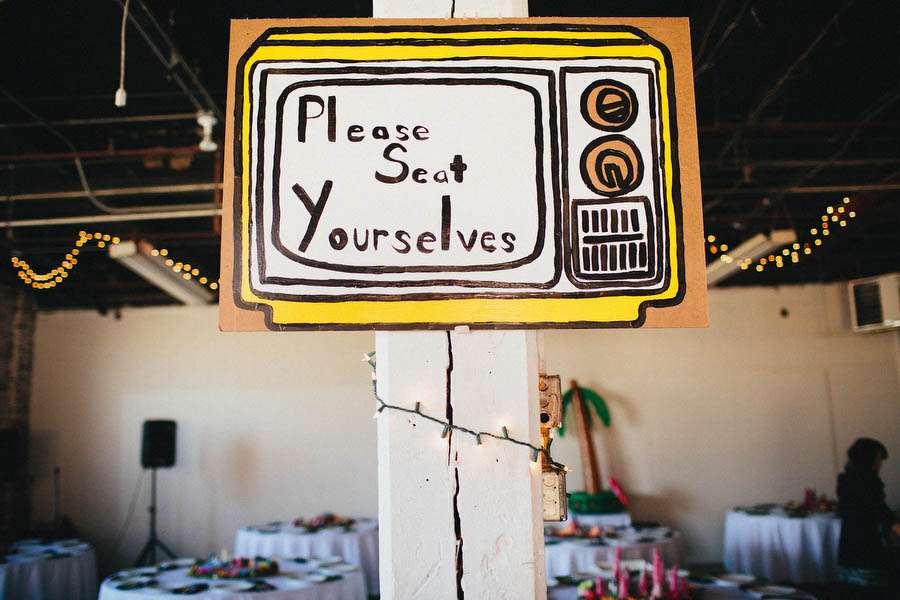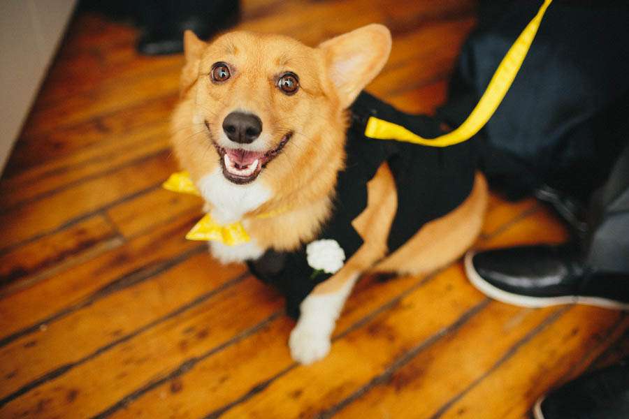 The wedding was held in High Concept Laboratories, Chicago, a space the couple could totally make their own. “Our reception decor and props, including the centrepieces were made by Joey Mansfield“, Nick continued. “Busy Beaver Buttons made the 2.25″ buttons; With Love XOX made our dog/ringbearer’s outfit (suit, vest, collar/leash); Reuse First helped with all the printing and our photo booth was from Chicago Event Pics.”