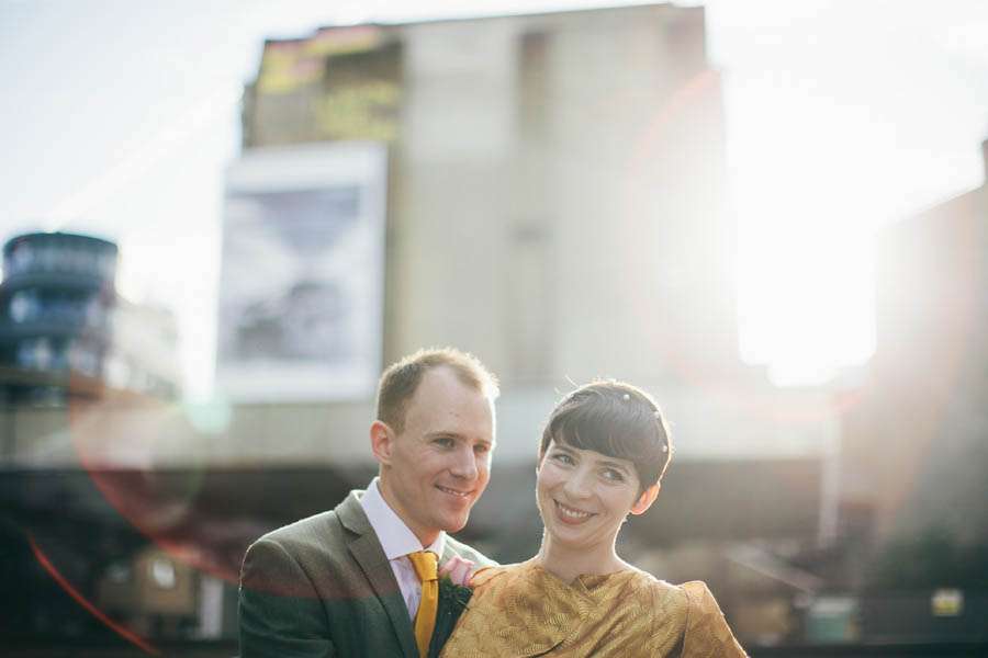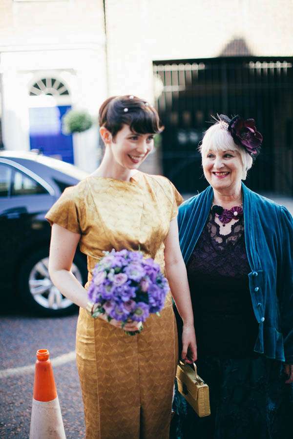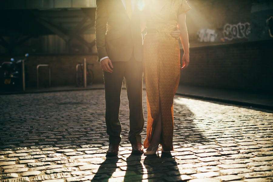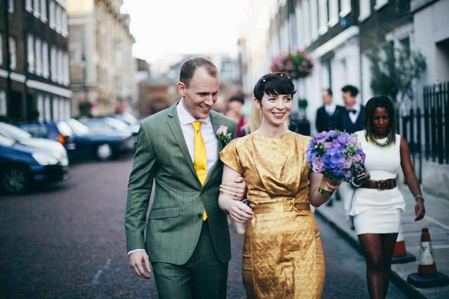 “Right from the start, doing things differently was really important to us,” she continued. “We wanted to do what felt natural for us, rather than what’s often expected or ‘the norm’. So, Paul met the guests in the pub for a pint beforehand, I chose to wear gold rather than white, we got up and did a speech together, had ten-pin bowling at our after-party and honeymooned in Texas. If we were to have a theme it would have been ‘A dash of cool London, a splash of kitsch Americana… and a whole lot of fun.’ We met playing five-a-side football in Shoreditch, so – although neither of us is from London – it felt right to have an East End wedding. The city is a part of our history and set the scene and vibe for the day’s celebrations.”