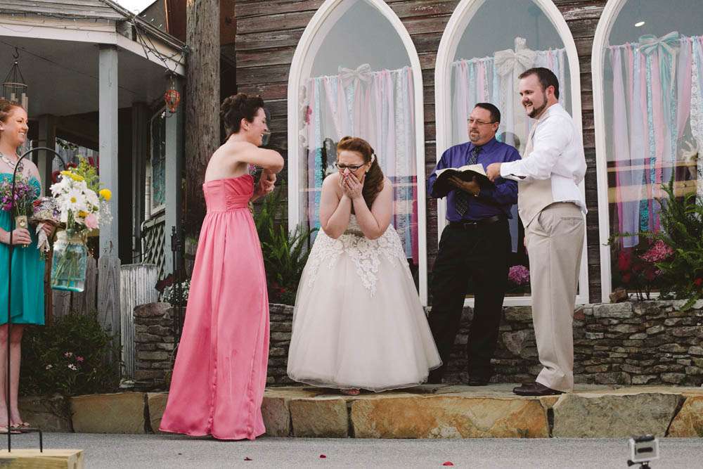 An eclectic mix of rustic, shabby chic and DIY, Marcus & Whitney’s wedding was held in a lumber yard in Huntsville, AL. “We just wanted everything to reflect our personalities”, wrote the bride. “We both rock to the beat of our own drum and knew we didn’t want a super traditional stuffy wedding because that is far from anything we’d ever enjoy.”