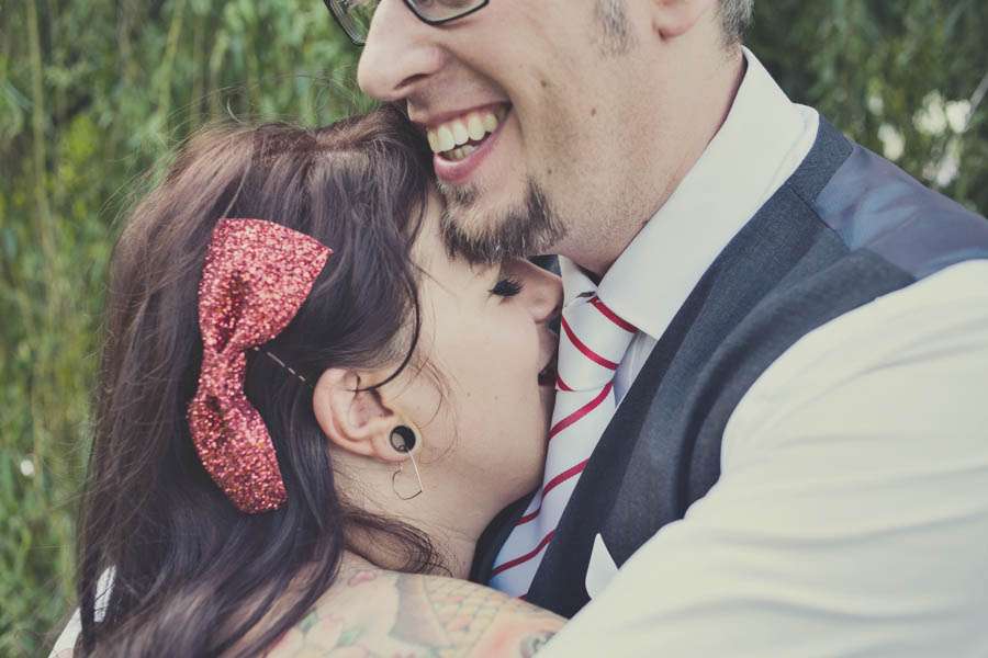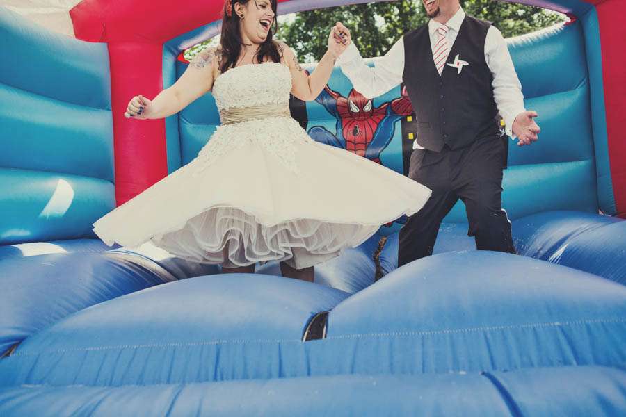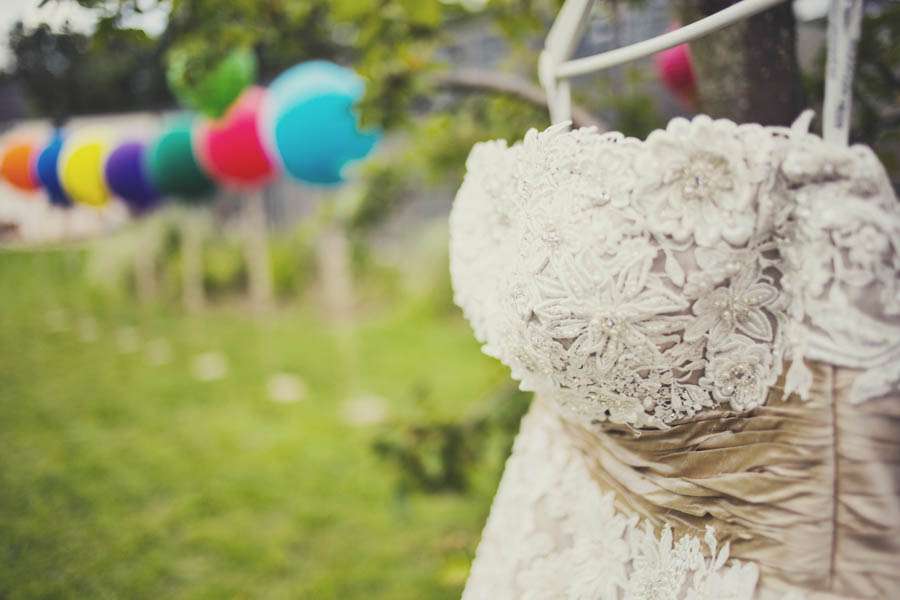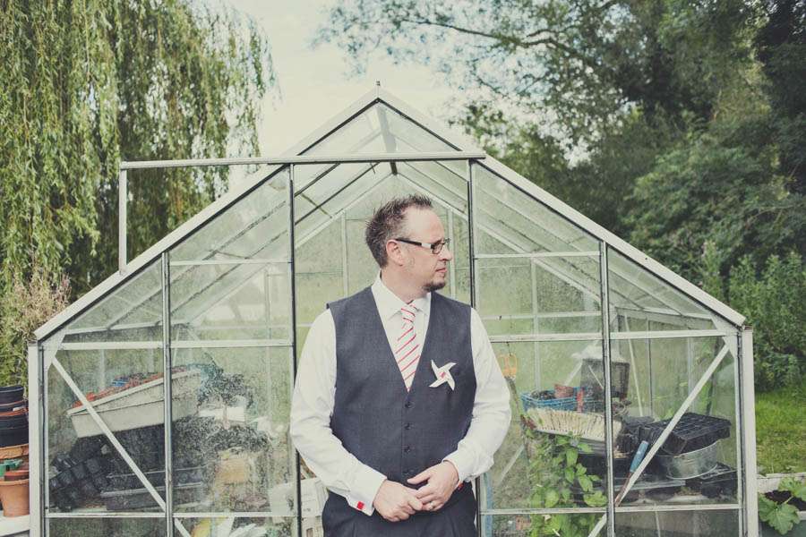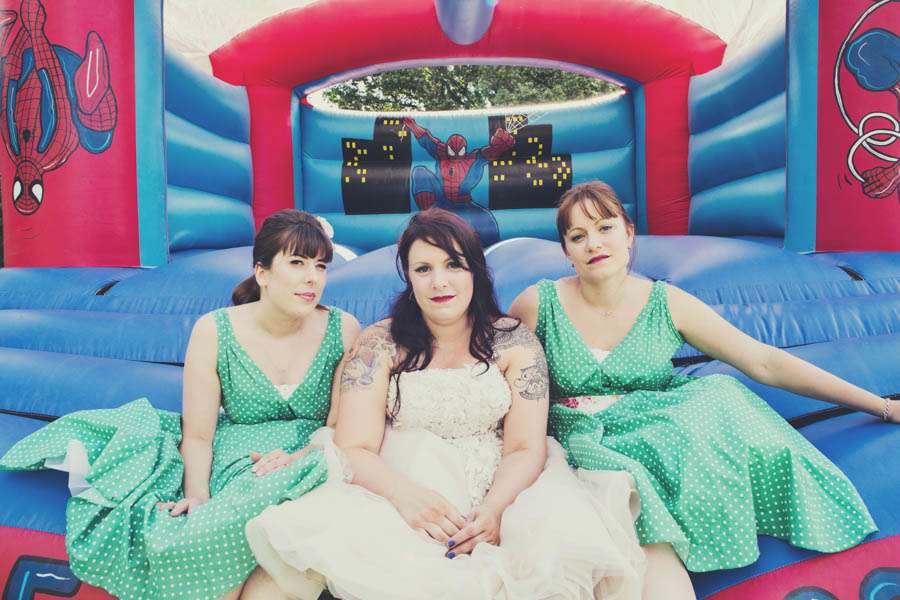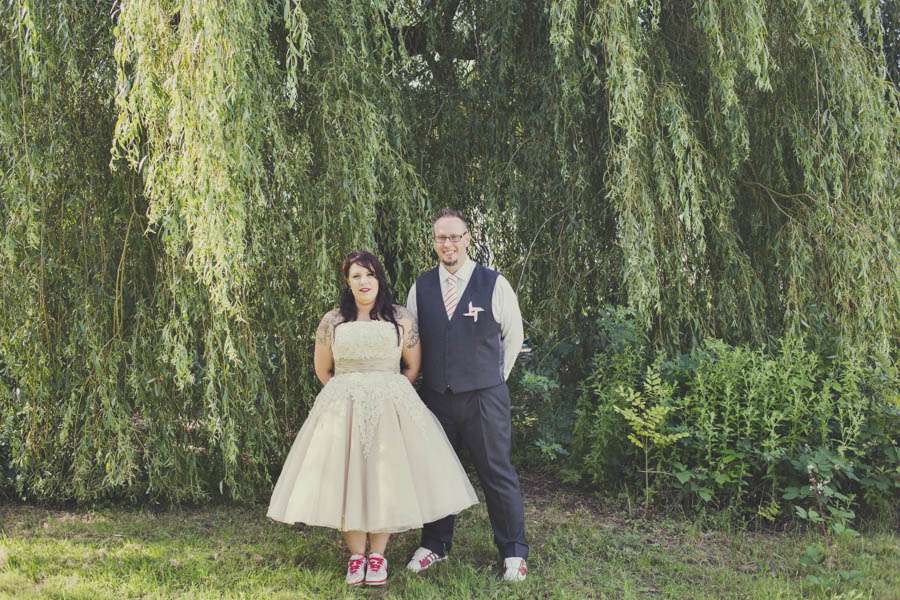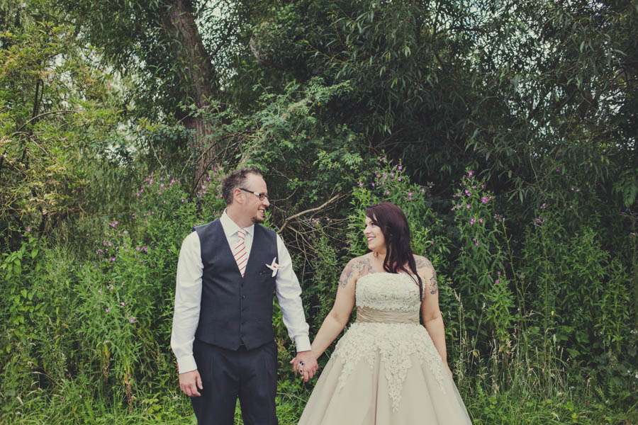 Jennie wore a Justin Alexander dress which she bought second hand from eBay (although it had never even been worn!), Vivienne Westwood shoes which she changed for custom Nike ID trainers later in the day. Her bridesmaids were in Viva-la-rosa dresses and the flowergirls wore dresses made by the bride’s mum with fabric from Ikea.